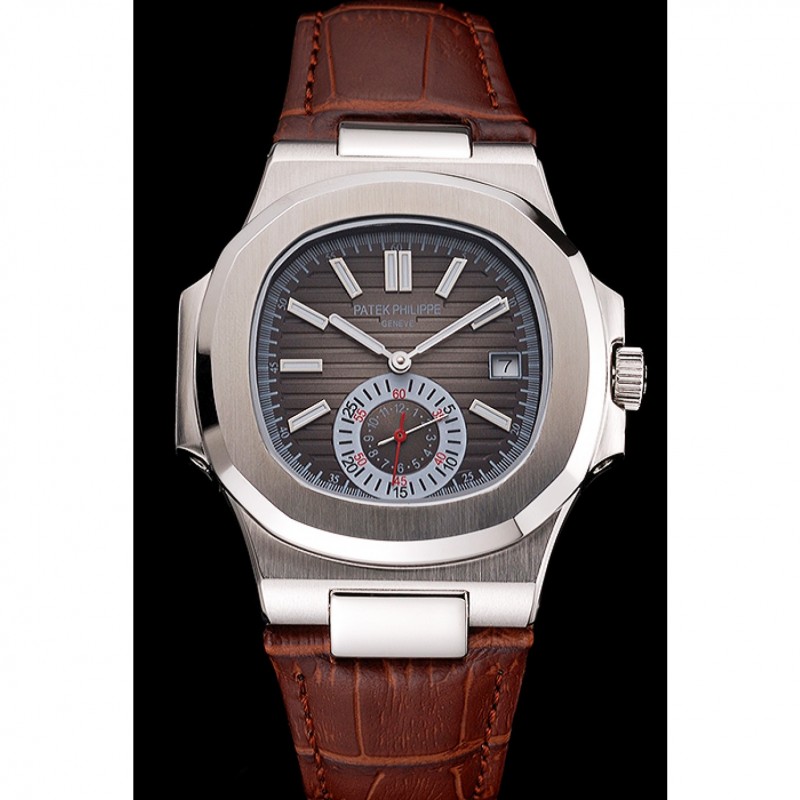 Patek Philippe Nautilus Gris Dial correa de cuero caja de acero inoxidable de Brown