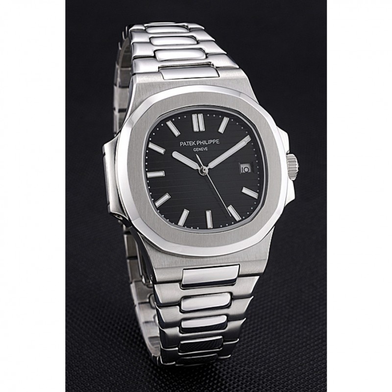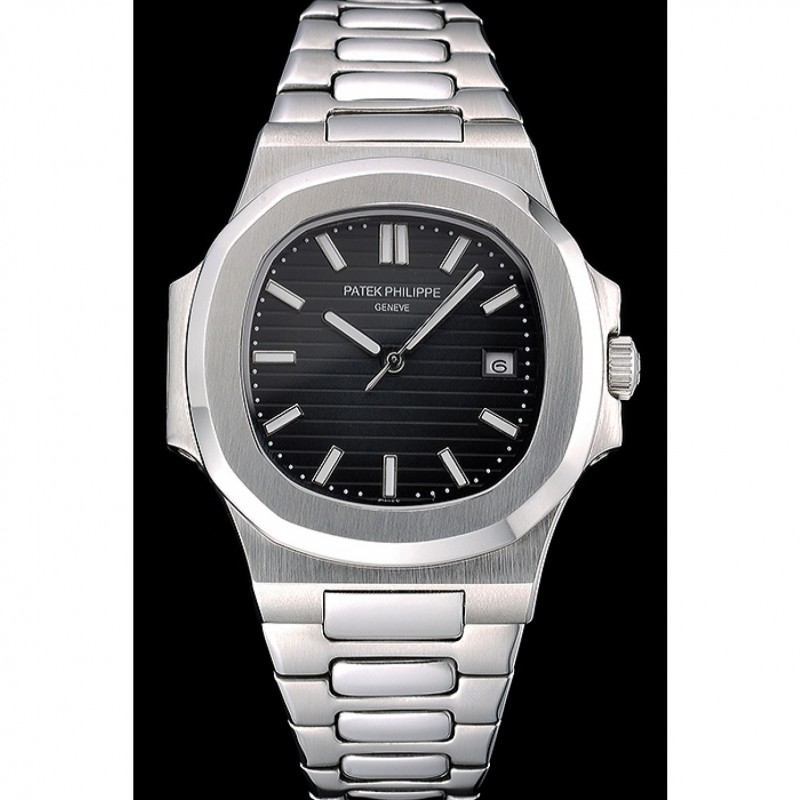 Patek Philippe Nautilus Negro Dial caja de acero inoxidable 622719