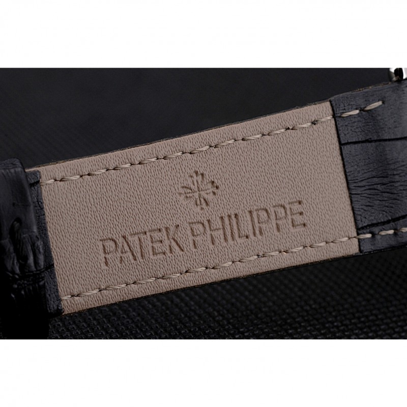 pulsera: logo y Patek Philippe calor en relieve correa de piel de cocodrilo negro con el logotipo y Patek Philippe grabado de acero inoxidable pulido gancho hebilla de cierre