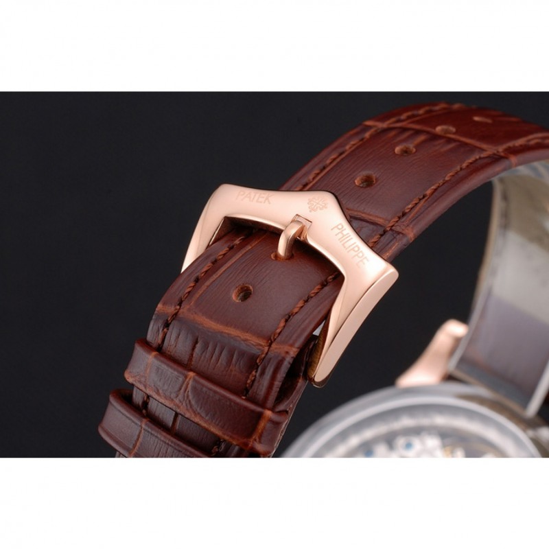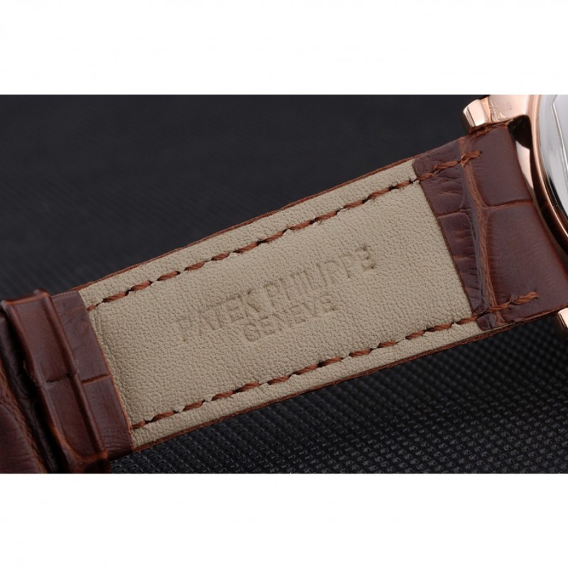 pulsera: calor Patek Philippe Geneve en relieve correa de piel de cocodrilo marrón con logotipo y Patek Philippe inscrito rosa de 18 quilates chapado en oro gancho hebilla de cierre