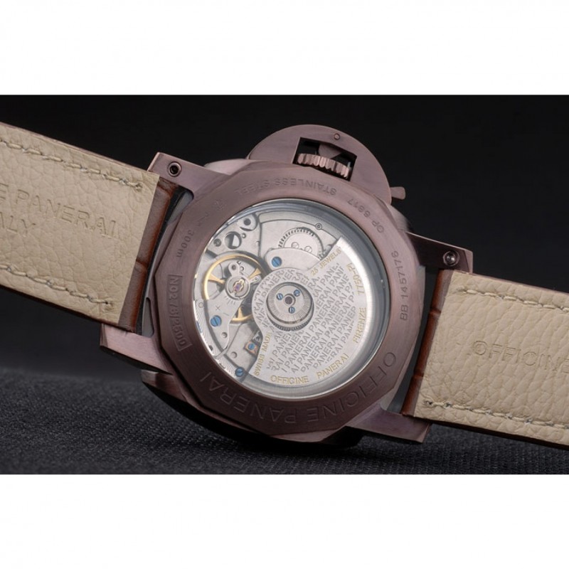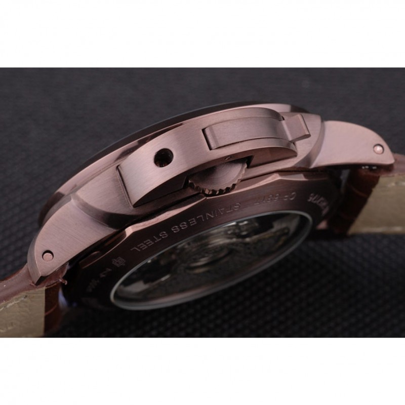 Volver: esmalte de Brown broche en la espalda con la mecánica transparentes revelando centro e inscripciones Panerai