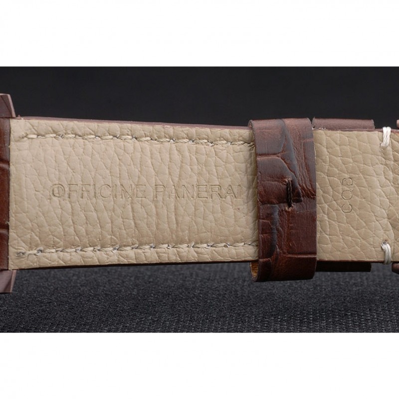 pulsera:calor Officine Panerai en relieve correa con costura hilo blanco y esmalte marrón Panerai grabado de gancho hebilla de cierre