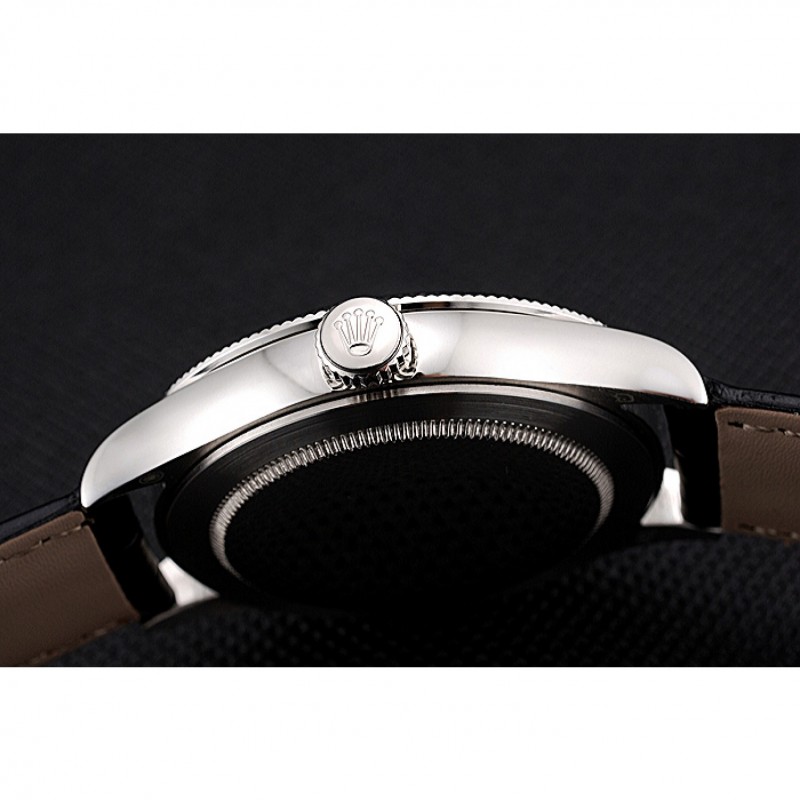 Plata Rolex Cellini Tiempo Caso Negro Dial pulsera de cuero Negro 622654