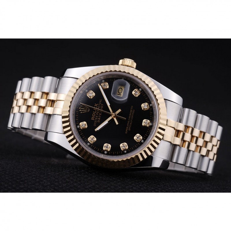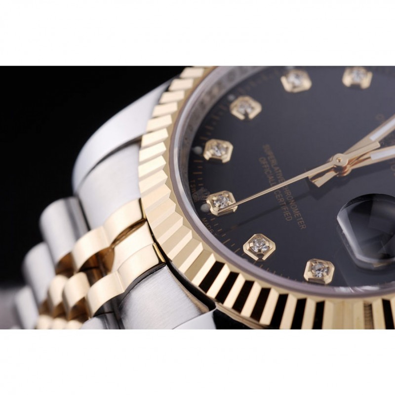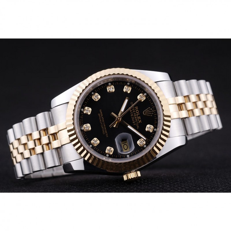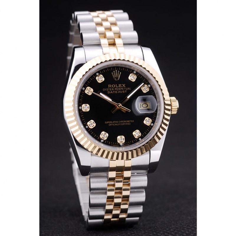 pulsera: cepillado de acero inoxidable y de eslabones de oro amarillo pulsera con Rolex logotipo de cierre oculto