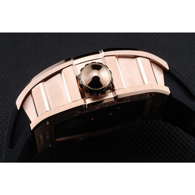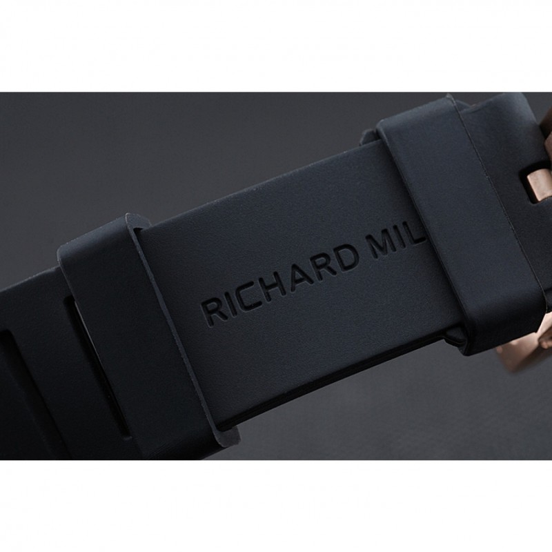 pulsera: correa de caucho negro en relieve calor Richard Mille con Richard Mille grabado 18K rose-chapado en oro de gancho hebilla de cierre
