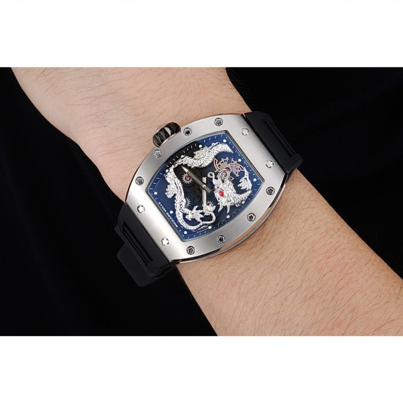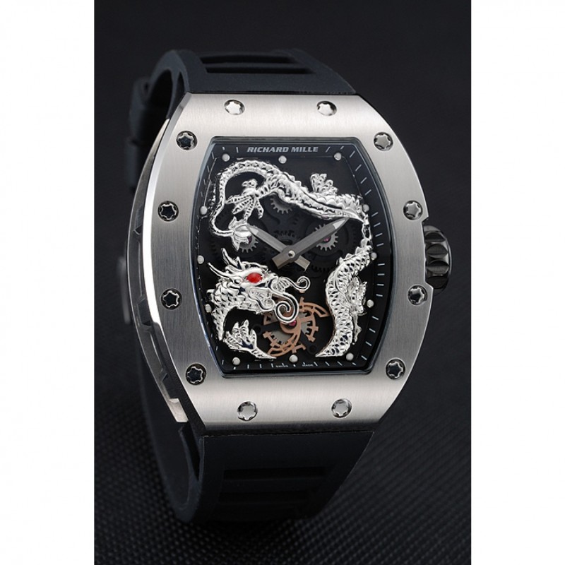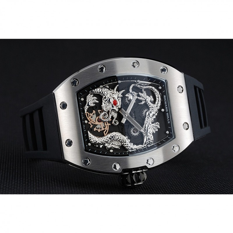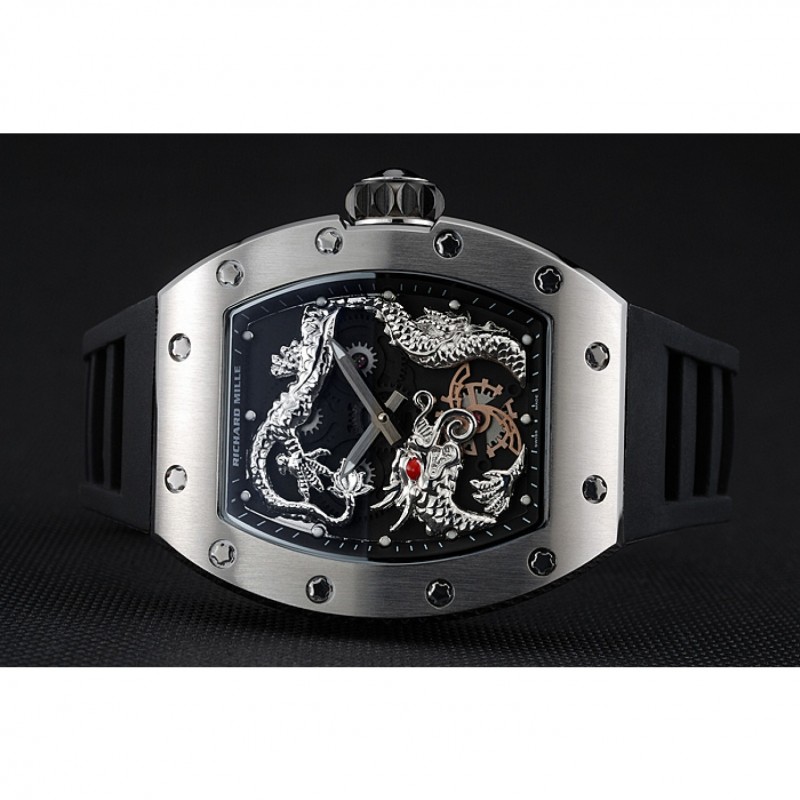 Richard Mille RM 057 pulsera de plata del caso de goma Negro Tourbillon Dragón Jackie Chan 1454201