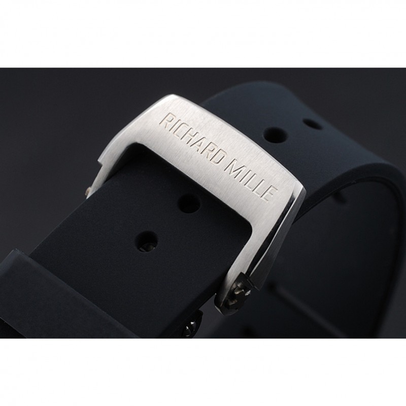 pulsera: correa de caucho negro en relieve calor Richard Mille con Richard Mille grabado acero inoxidable cepillado de gancho hebilla de cierre