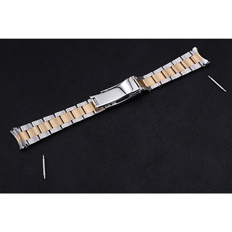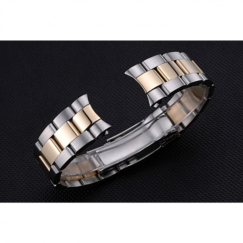 Pulsera: rosa de 18 quilates chapado en oro y cepillado pulsera de eslabones de acero inoxidable con cutwork hebilla de despliegue logotipo de Rolex