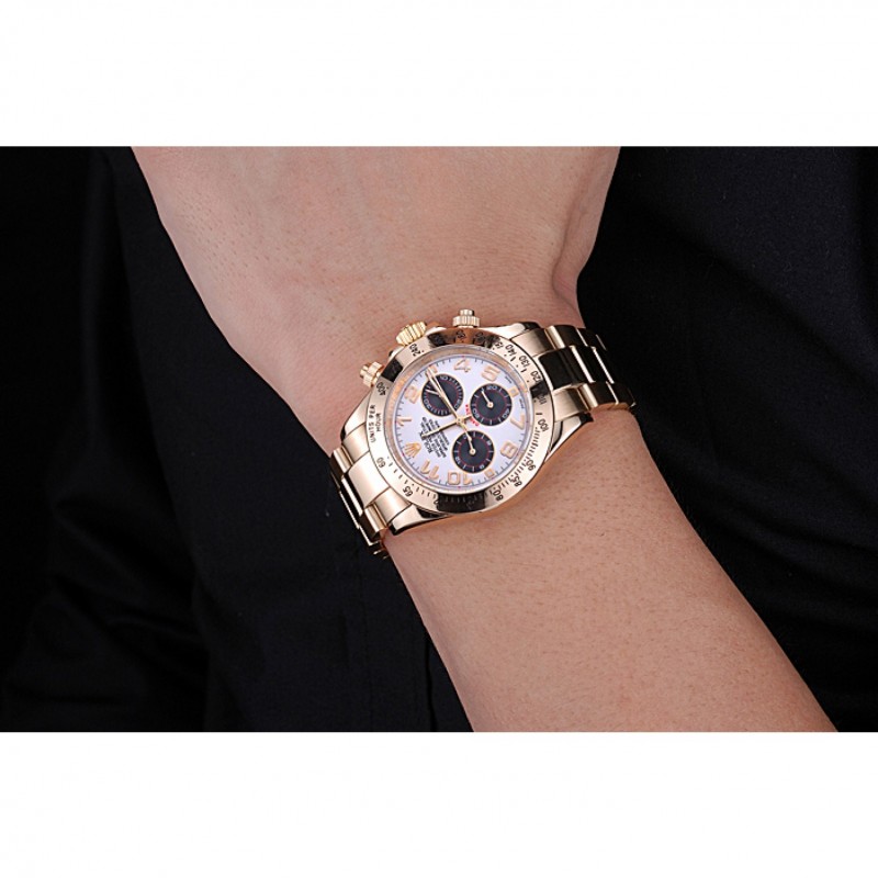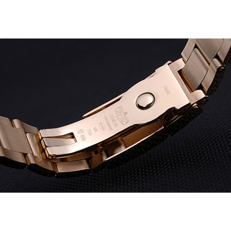 Corona: logotipo de Rolex grabado 18k amarillo-oro plateado corona calado con un pulsador ronda corona en cada lado de ella