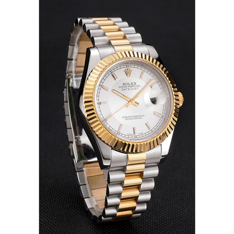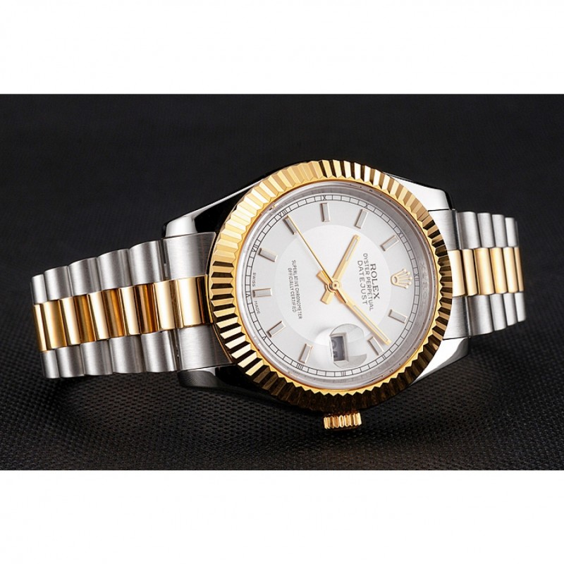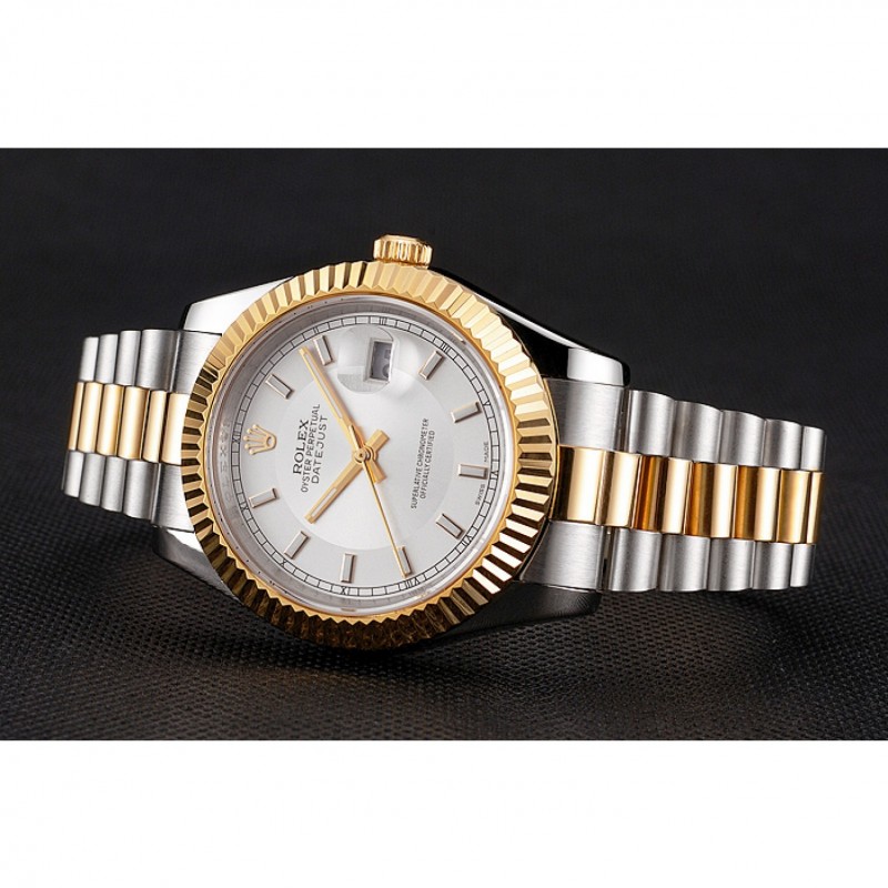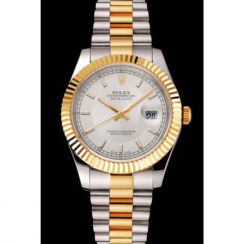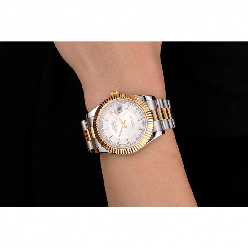 Rolex Datejust Blanco Dial Caja de acero inoxidable bisel de oro brazalete de dos tonos de oro