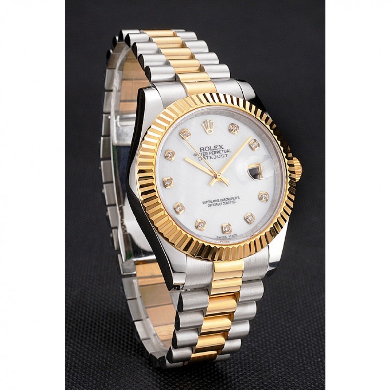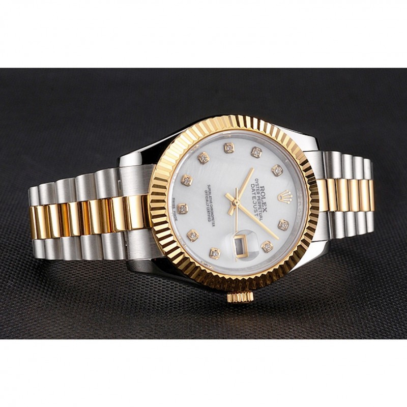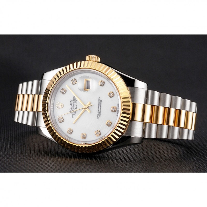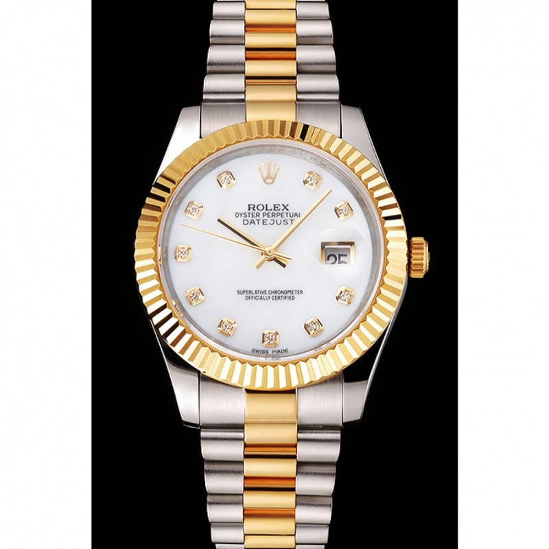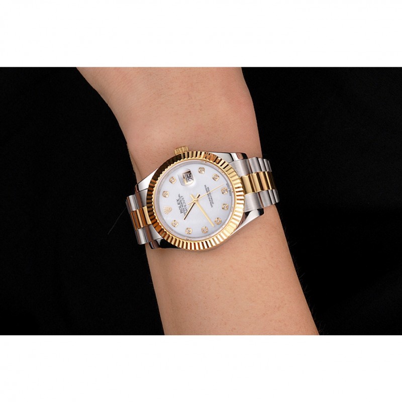 Rolex Datejust Blanco Dial Caja de acero inoxidable Diamond marcas de la hora bisel de oro pulsera de dos tonos