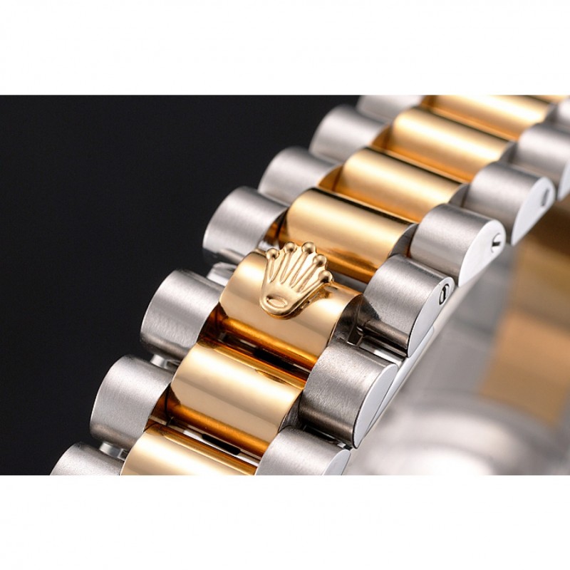 pulsera: cepillado de acero inoxidable y oro amarillo de 18k brazalete de eslabones plateado con el logotipo de Rolex tallado plegable en cierre oculto