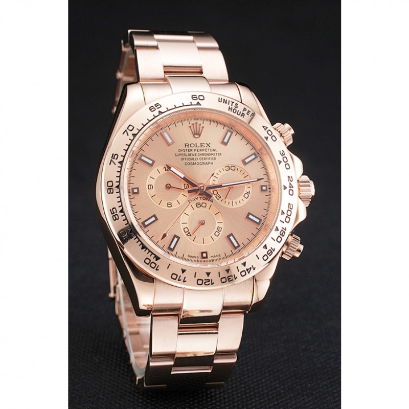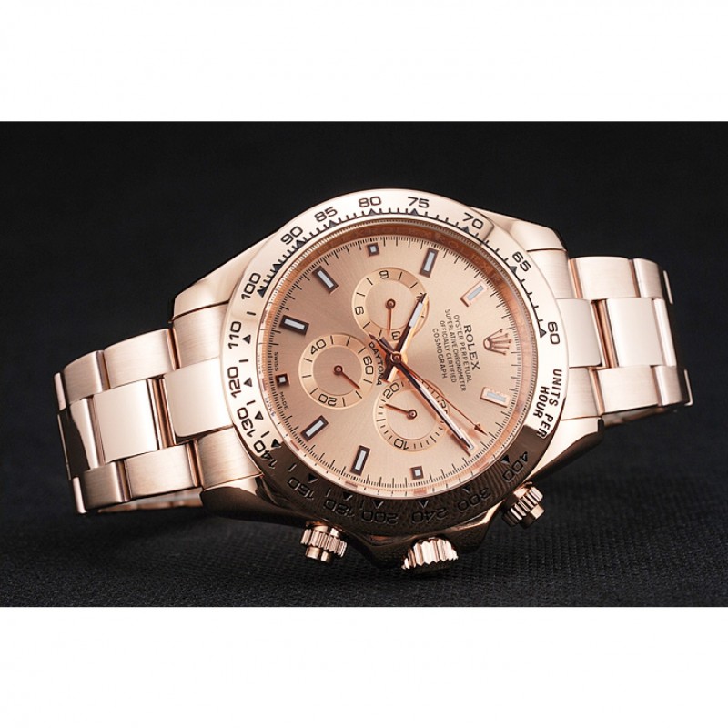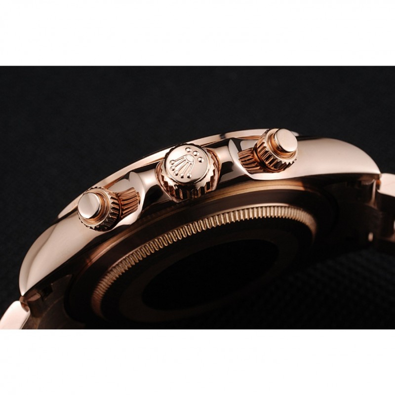 corona: 18k logotipo de Rolex grabado de oro rosa plateado corona calado con una corona pulsador calado a cada lado de ella