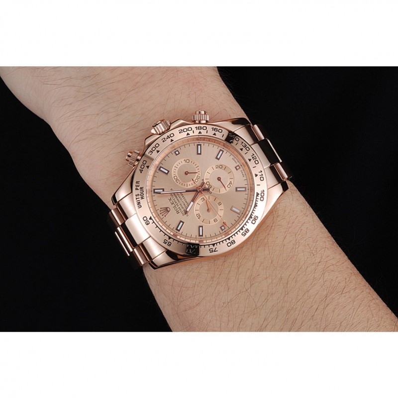 Corona: Rolex logo grabado 18k de oro rosa plateado corona calado con una corona pulsador calado a cada lado de ella