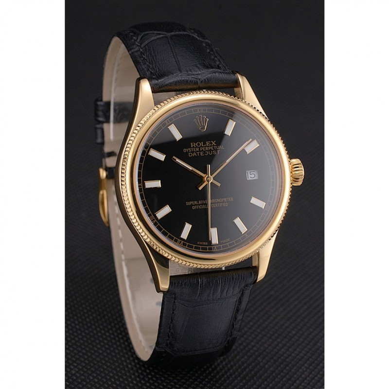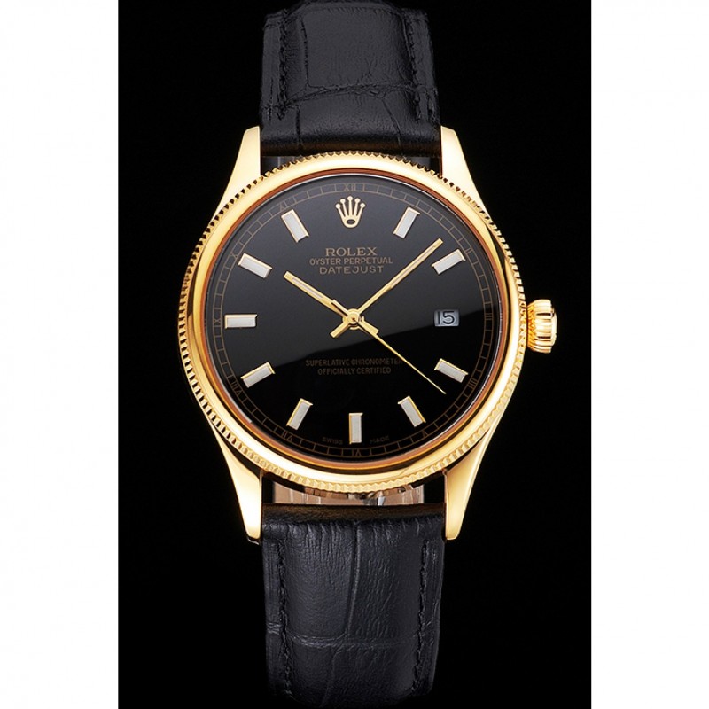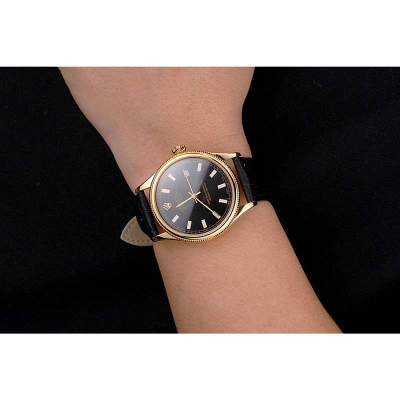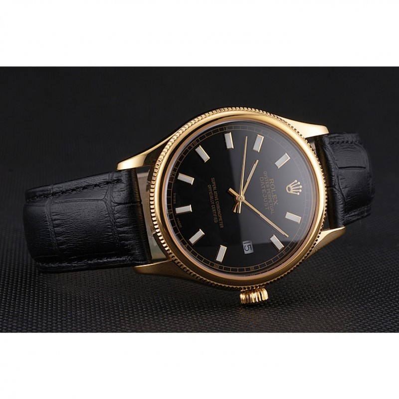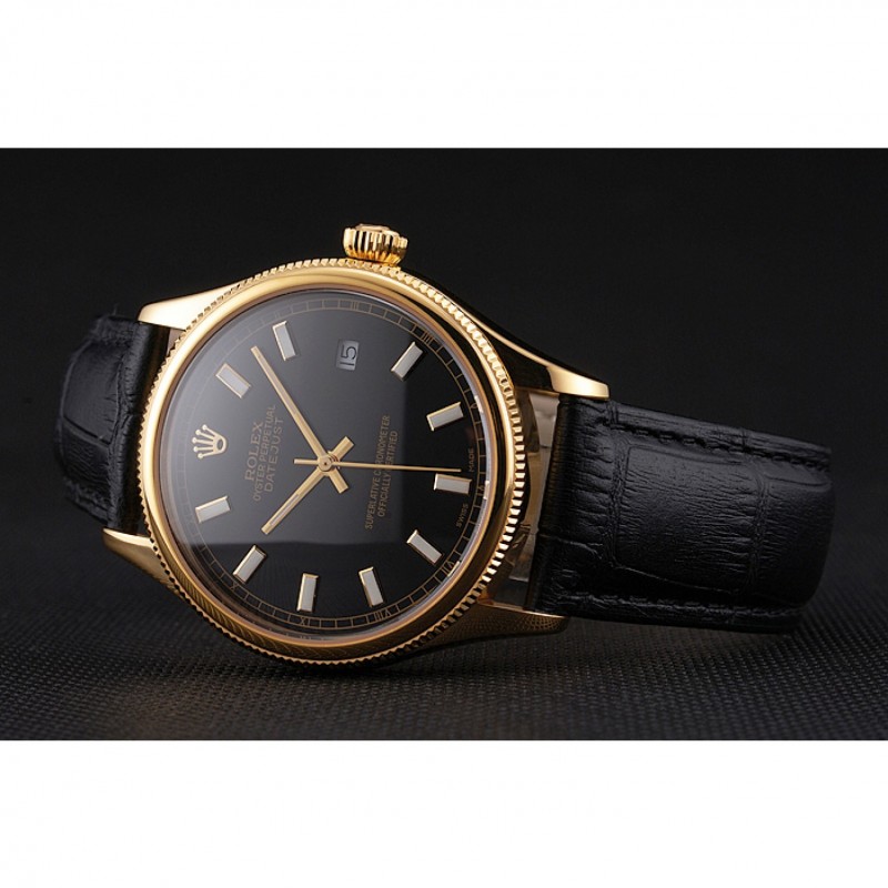 Rolex Datejust Negro Dial correa de cuero de la caja Negro Oro