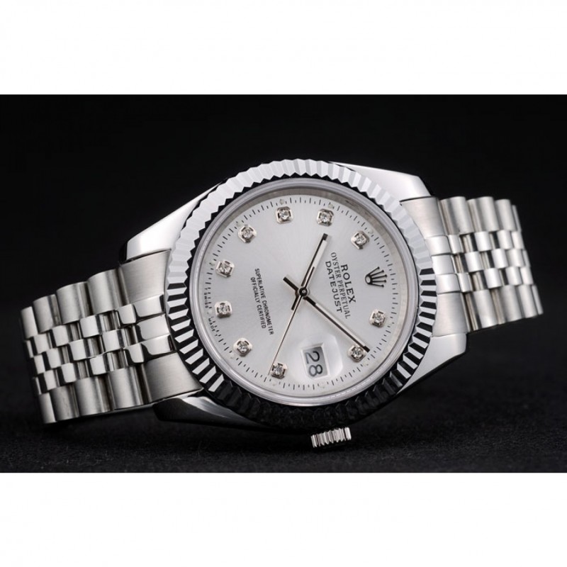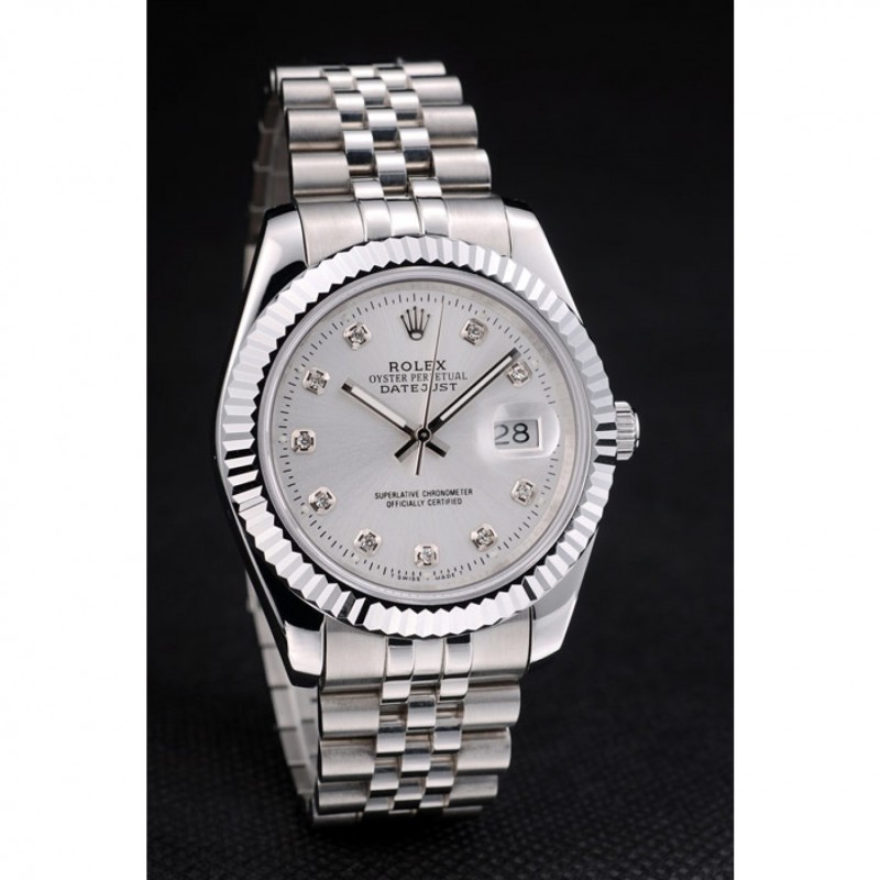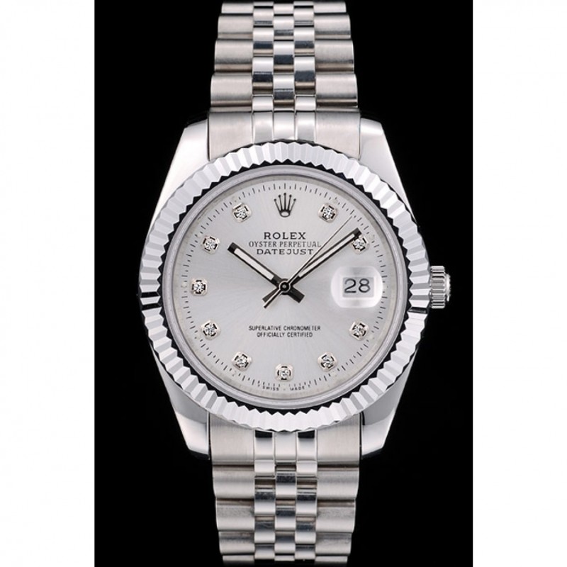 Rolex Datejust suiza de acero inoxidable acanalado Bisel Dial de plata 41996