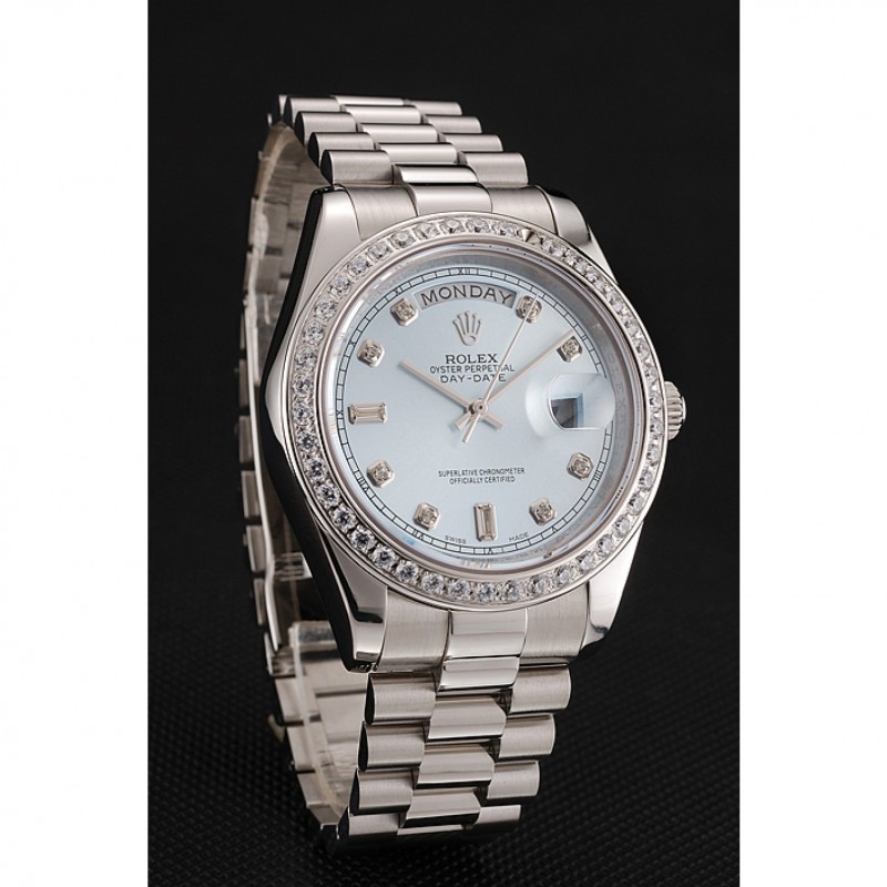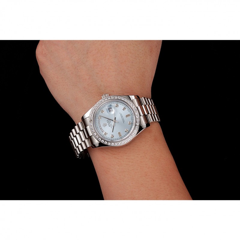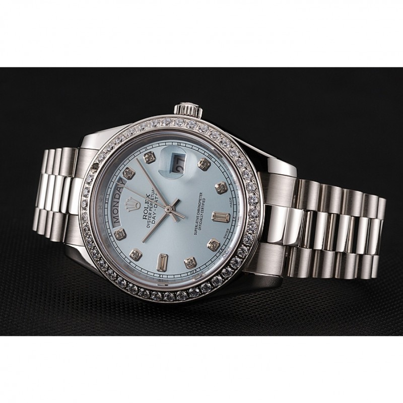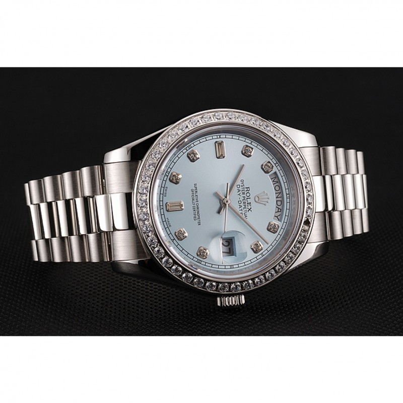 Rolex Day-Date Ice Blue Diamond Dial caja del diamante numerales pulsera de acero inoxidable 1453963