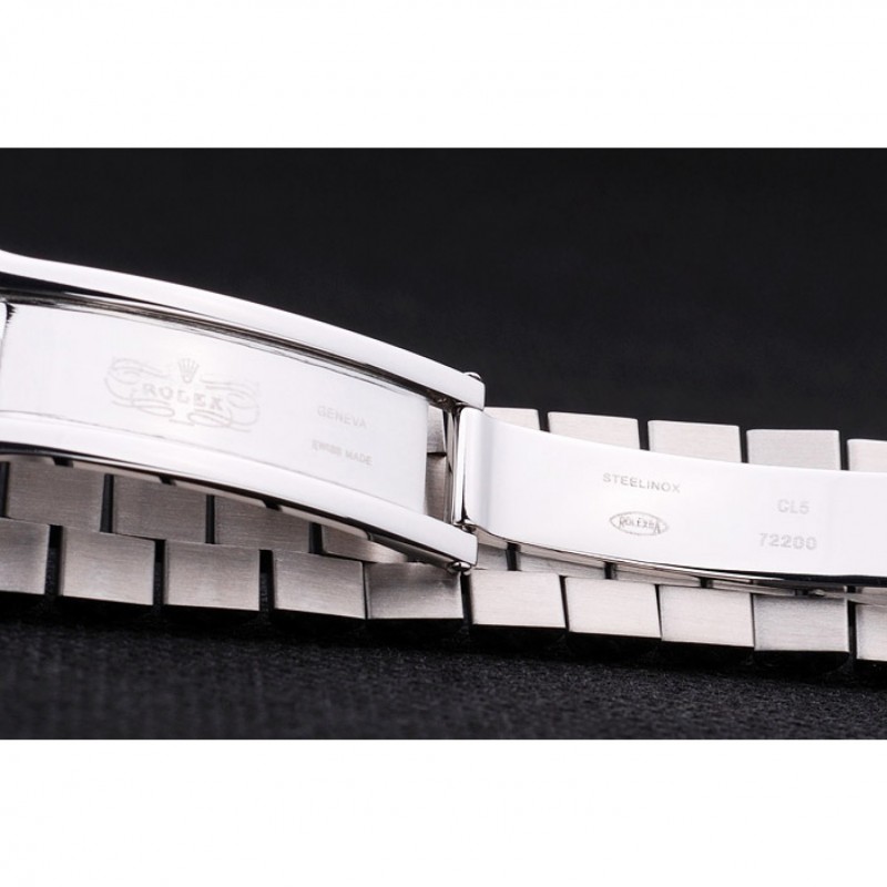 pulsera: cepillado y pulido brazalete de acero inoxidable con grabado Rolex cierre oculto que muestra el logotipo de Rolex