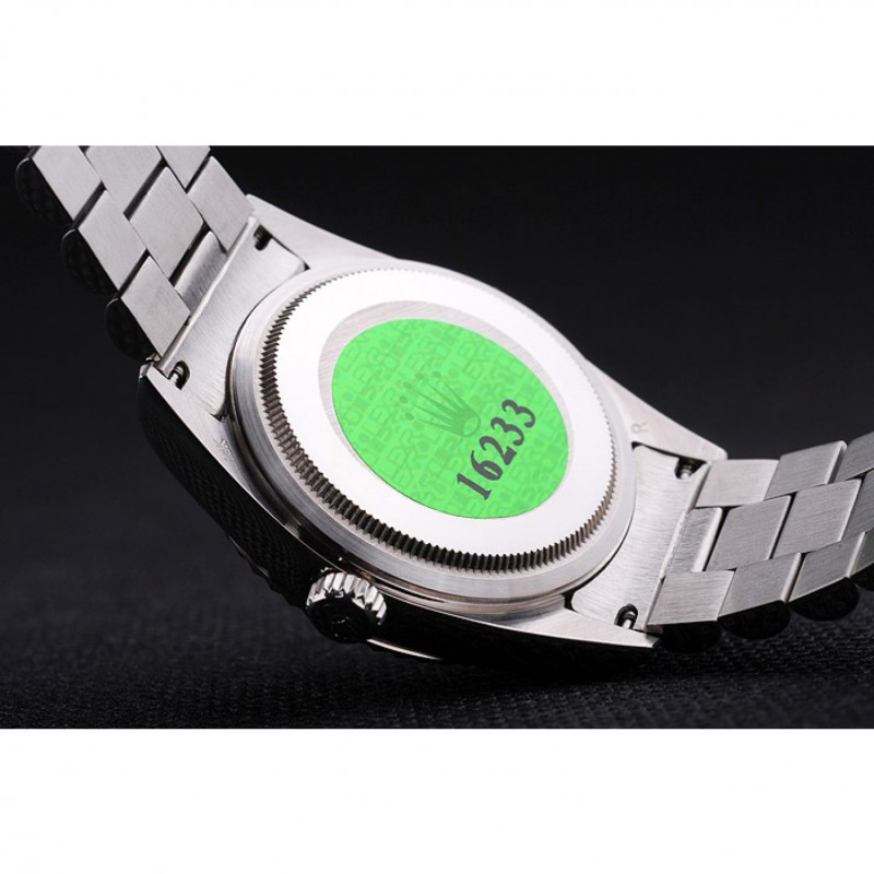 Volver: de acero inoxidable de empuje en el caso de vuelta con el logotipo verde sello Rolex