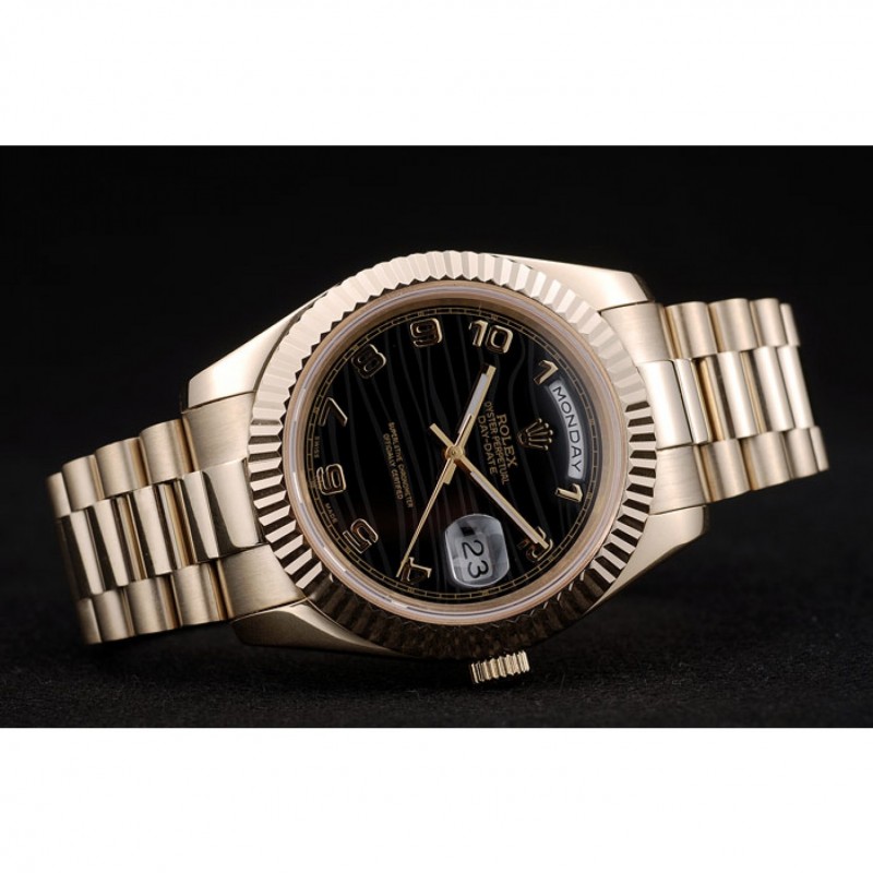 Rolex DayDate suiza Oro acero inoxidable acanalado Bisel Negro Dial 41998