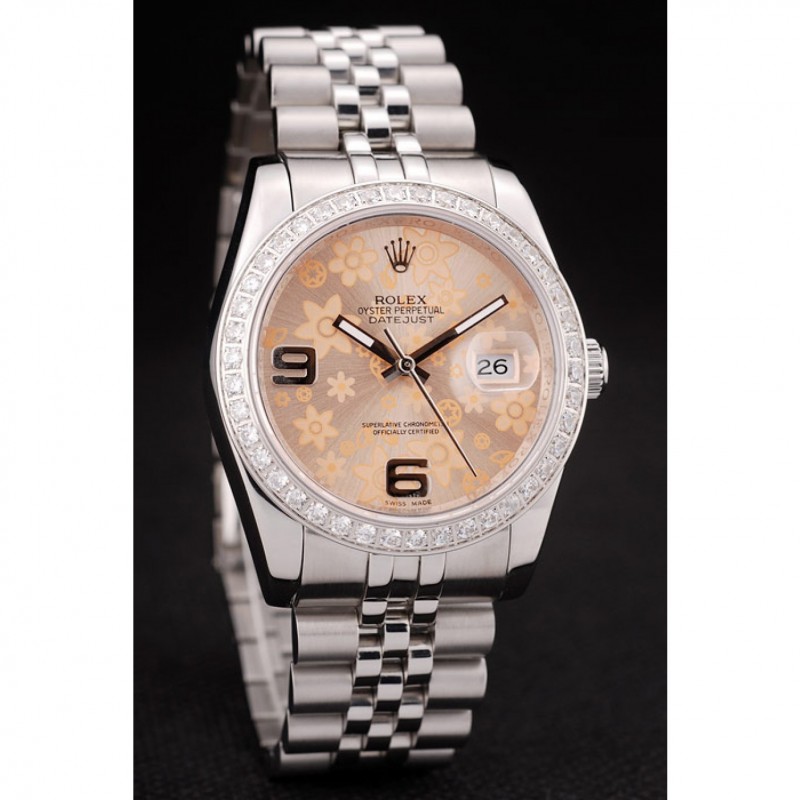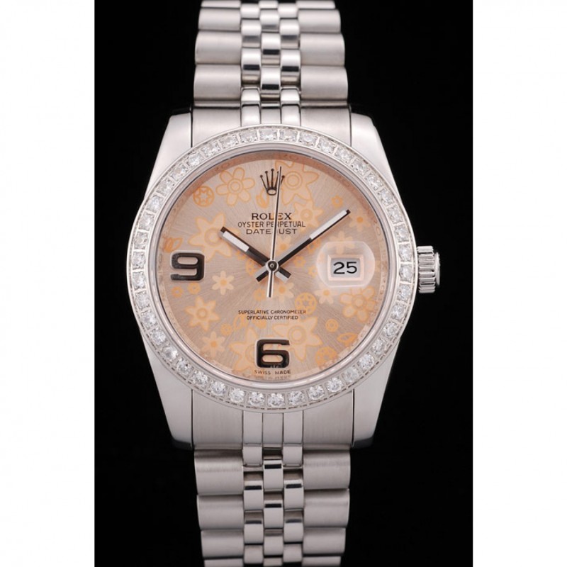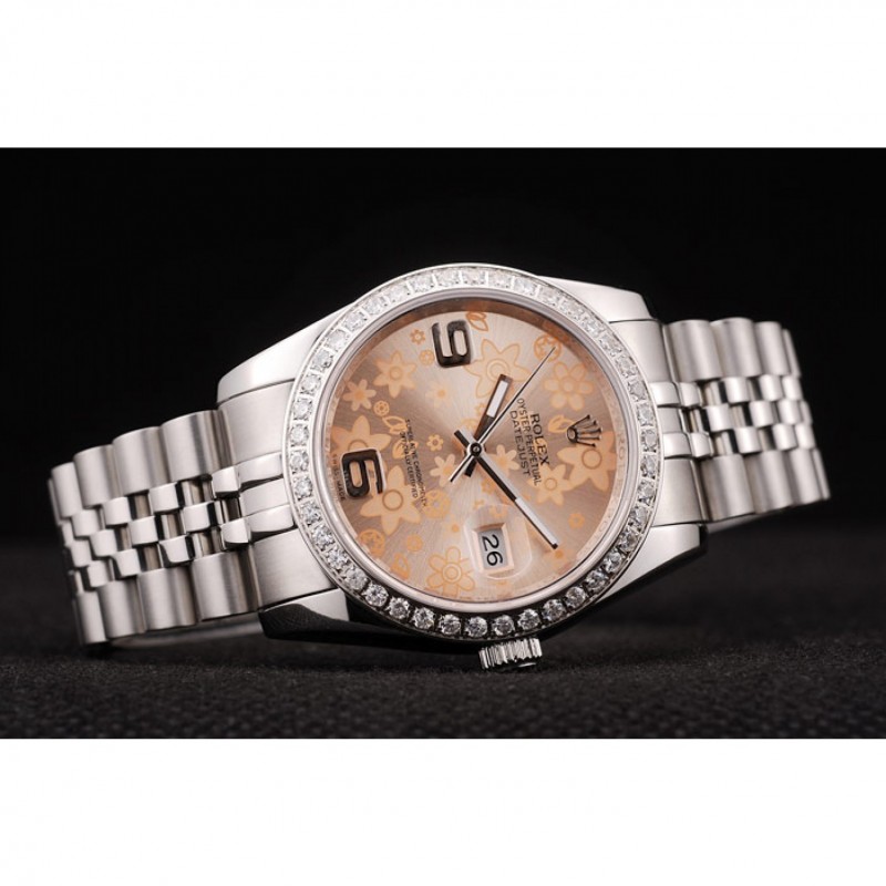 Rolex Daytona acero inoxidable cepillado caja anaranjada Flores Dial diamantes niquelados