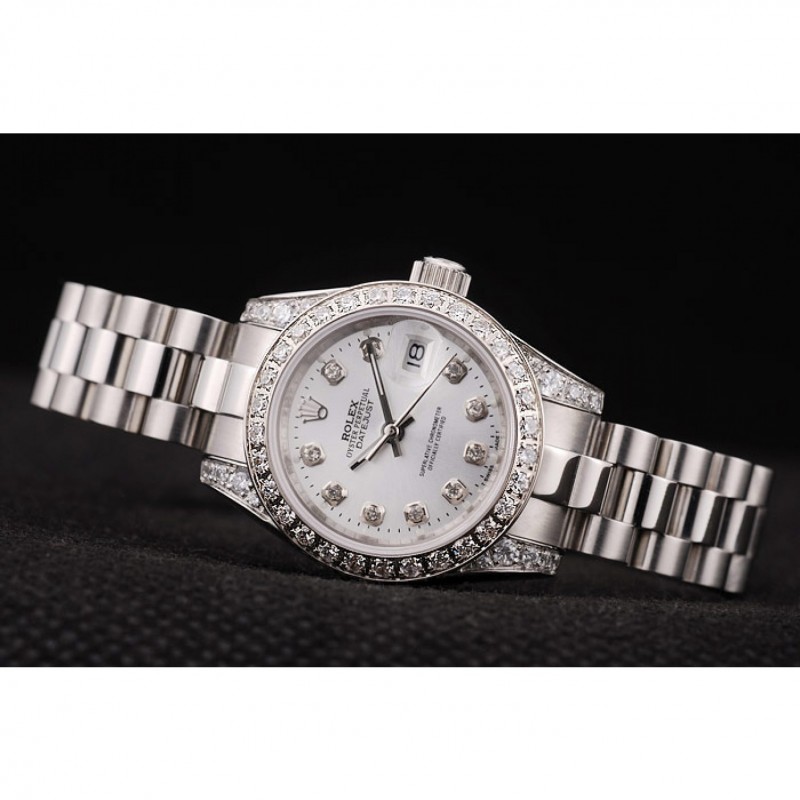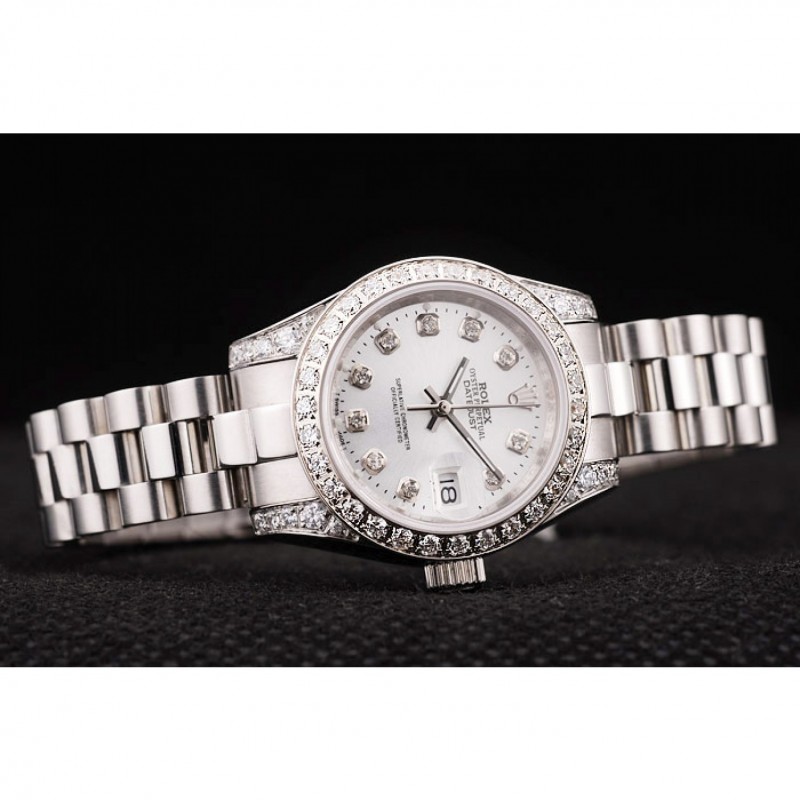 Rolex Daytona acero inoxidable cepillado diamante plateado Caso Blanco Dial diamante plateó la bandeja