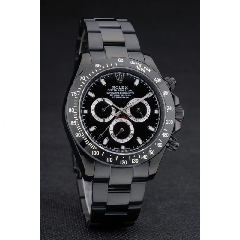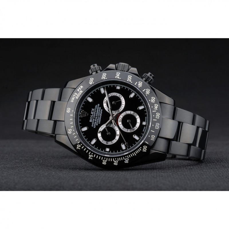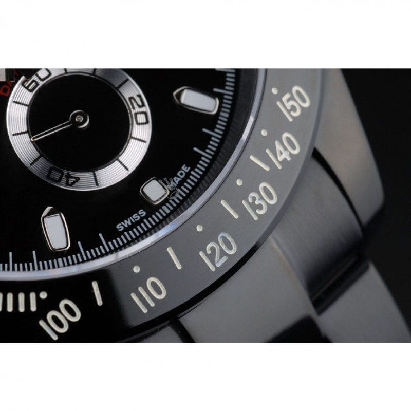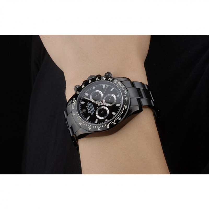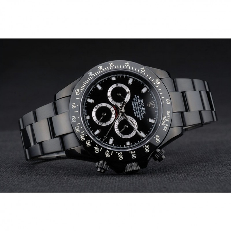 Rolex Daytona Negro Ion plateado taquímetro Negro correa de acero inoxidable Dial Negro 80247