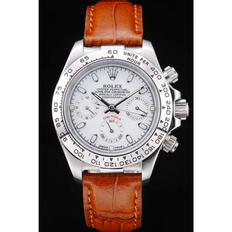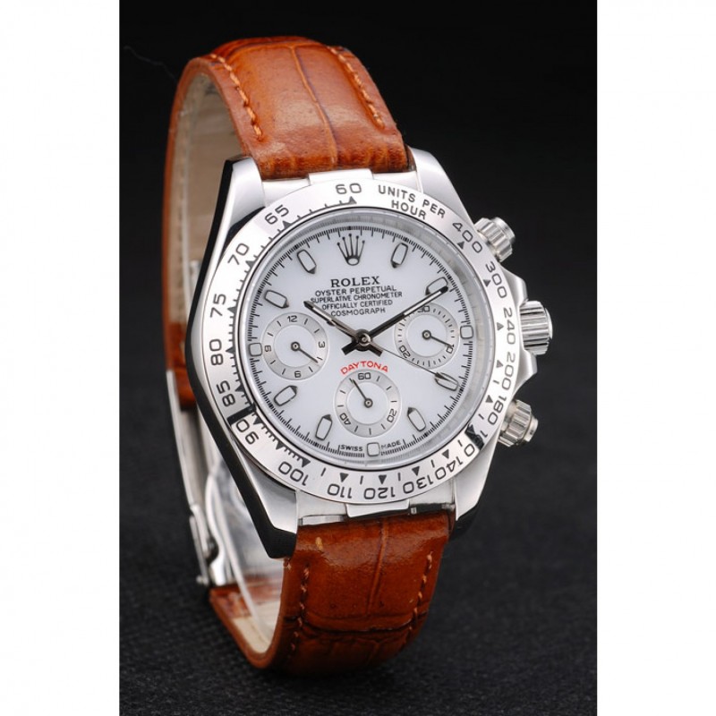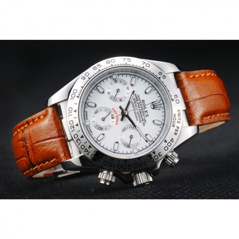 Rolex Daytona Señora caja de acero inoxidable Esfera Blanca, Correa de cuero marrón taquímetro
