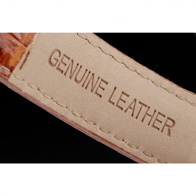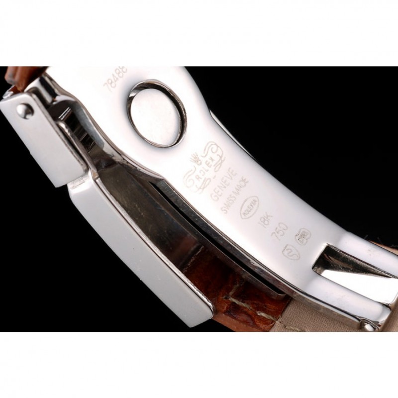 pulsera: correa de piel de cocodrilo marrón en relieve de calor Rolex con grabado cierre desplegable de acero inoxidable con el logotipo de Rolex en la parte superior