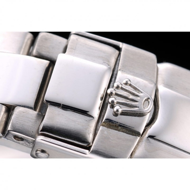 Crown: pulido corona calado de acero inoxidable con el logotipo de Rolex y dos botones coronas cutwork empuje más pequeños a cada lado de la misma