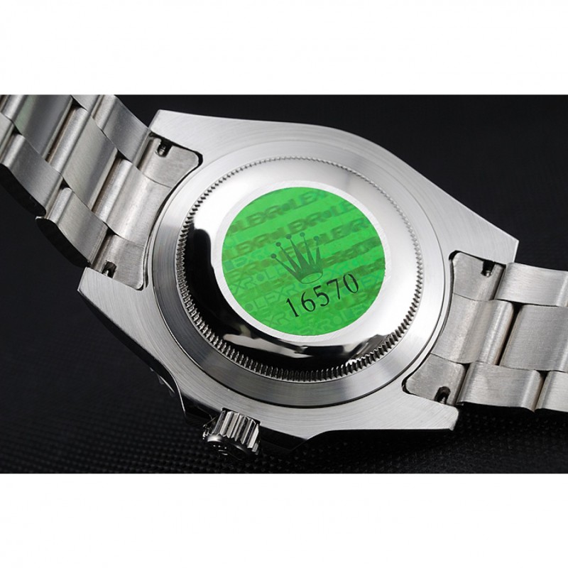 Volver: de acero inoxidable pulsador en el caso de vuelta con el sello grabado Rolex verde