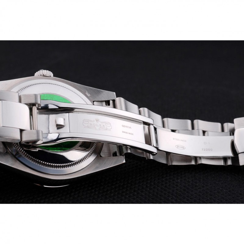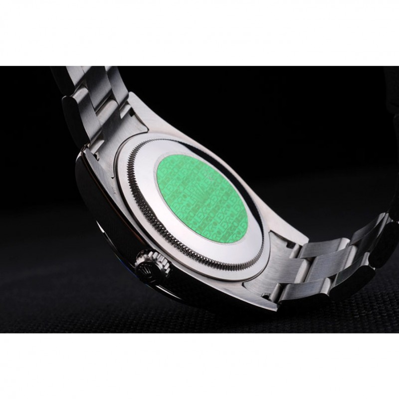 Volver: de acero inoxidable de empuje en el caso de vuelta con el sello grabado Rolex verde
