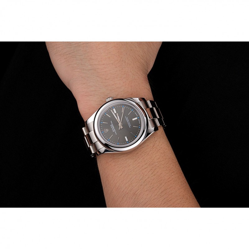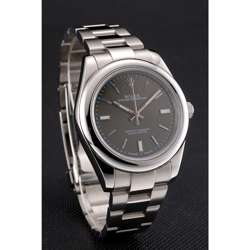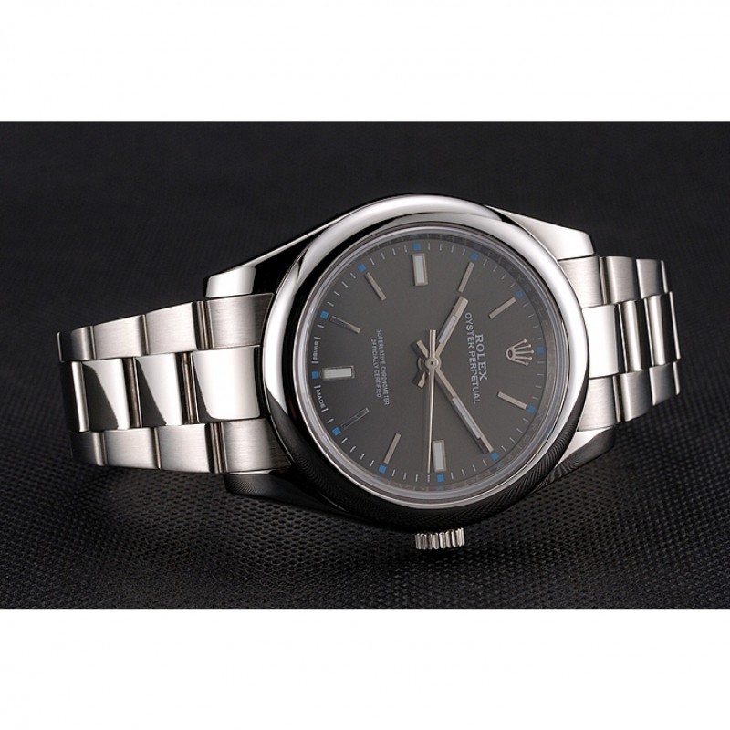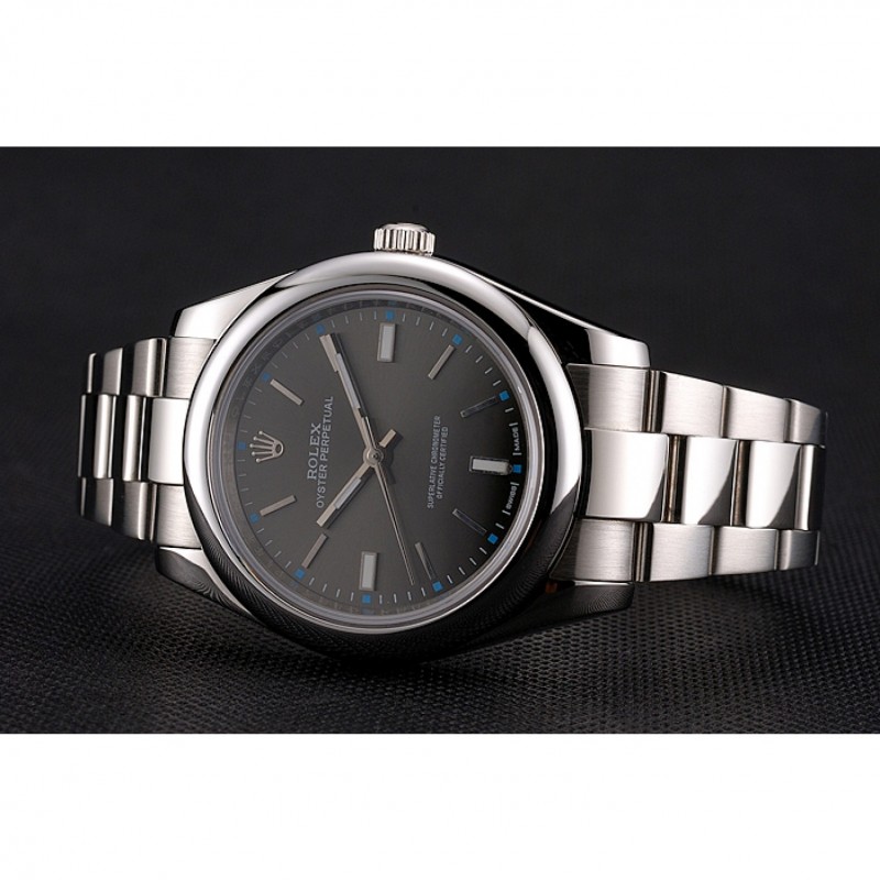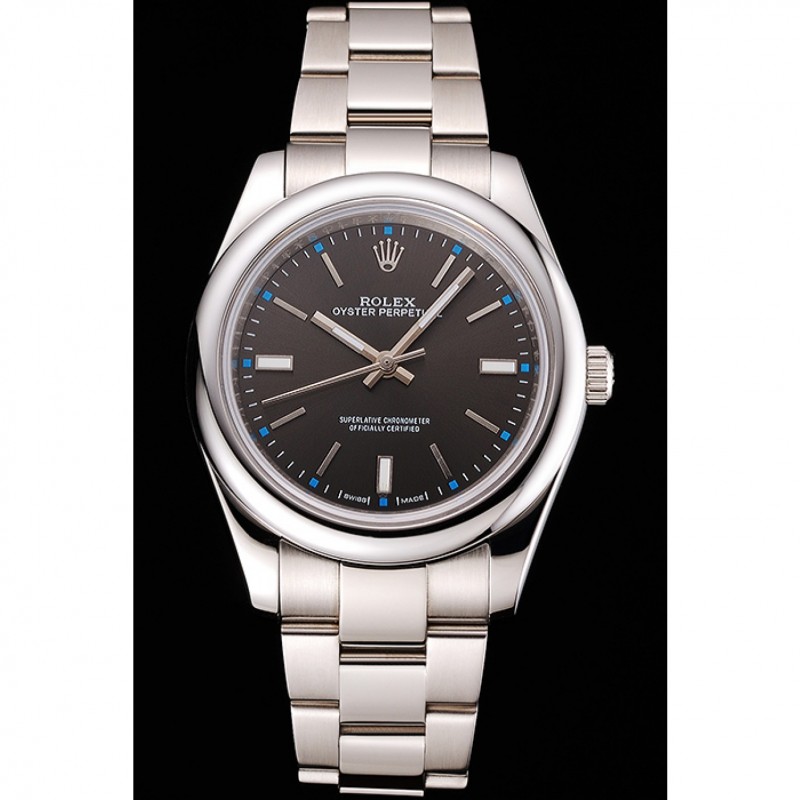 Rolex Oyster Perpetual Dial oscuro rodio caja de acero inoxidable y pulsera