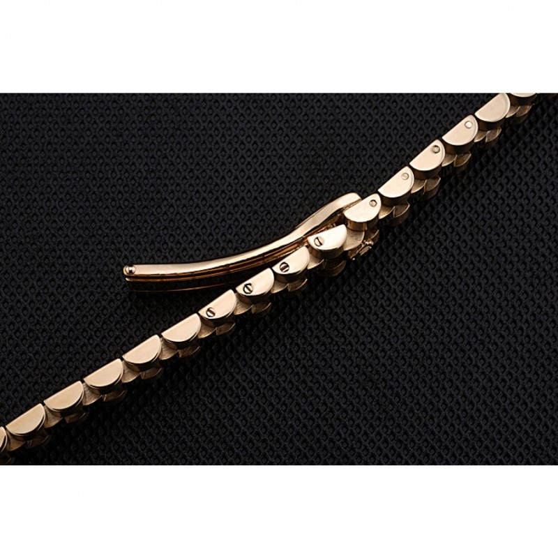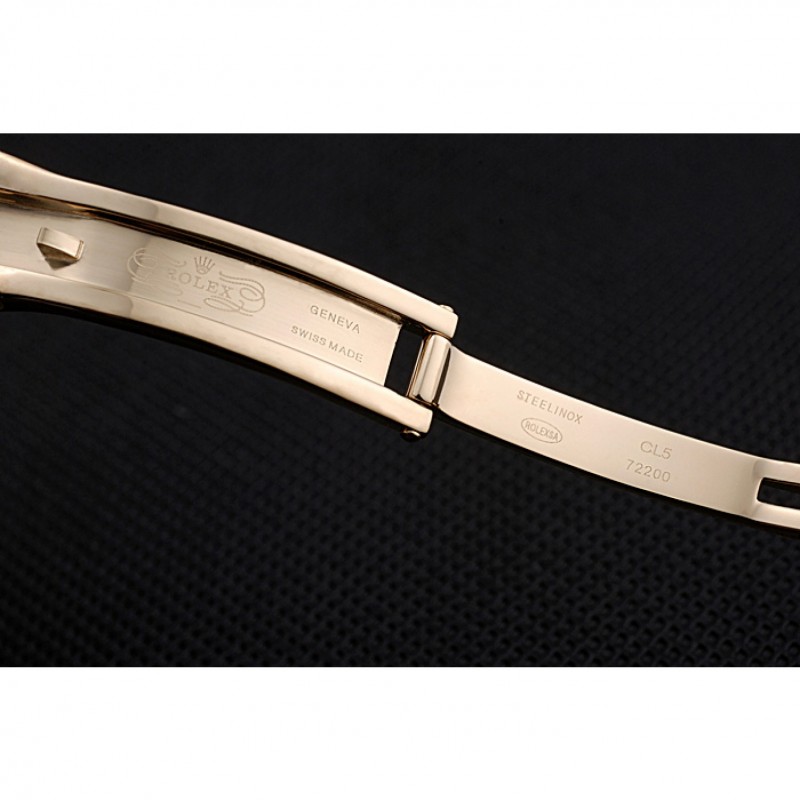Pulsera: rosa de 18 quilates chapado en oro brazalete de eslabones con calado Rolex logotipo de cierre oculto
