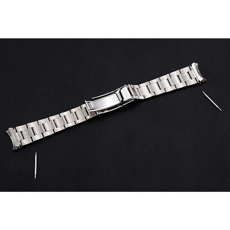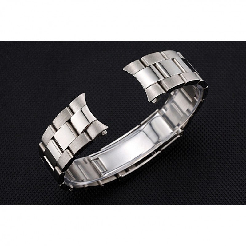 Pulsera: cepillado y pulido brazalete de eslabones de acero inoxidable con calado Rolex hebilla de despliegue logo