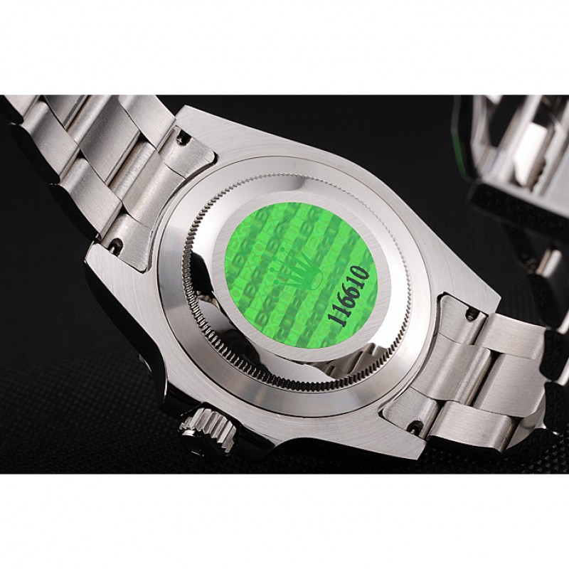 Volver: de acero inoxidable cepillado complemento de vuelta con el verde etiqueta de autenticidad Rolex