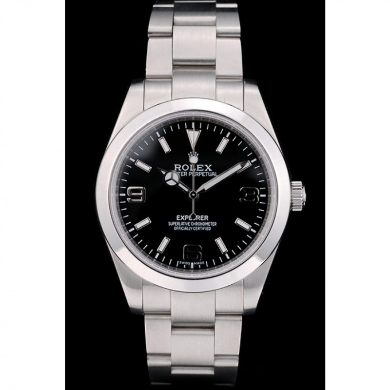 Rolex Suizo Explorador de acero inoxidable Bisel Negro Dial 42002