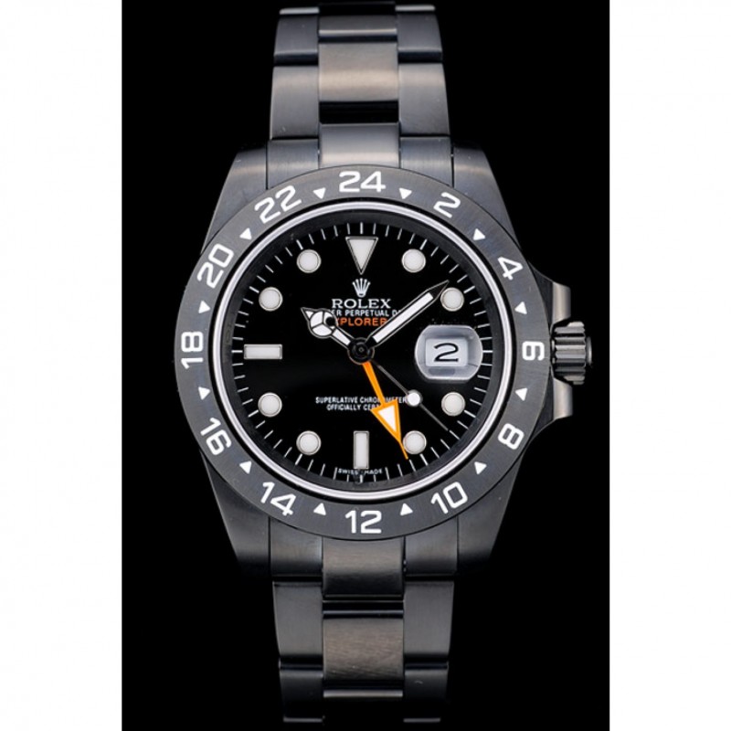 Rolex Suizo Explorador de cerámica Negro Bisel Negro esfera de un reloj 98239