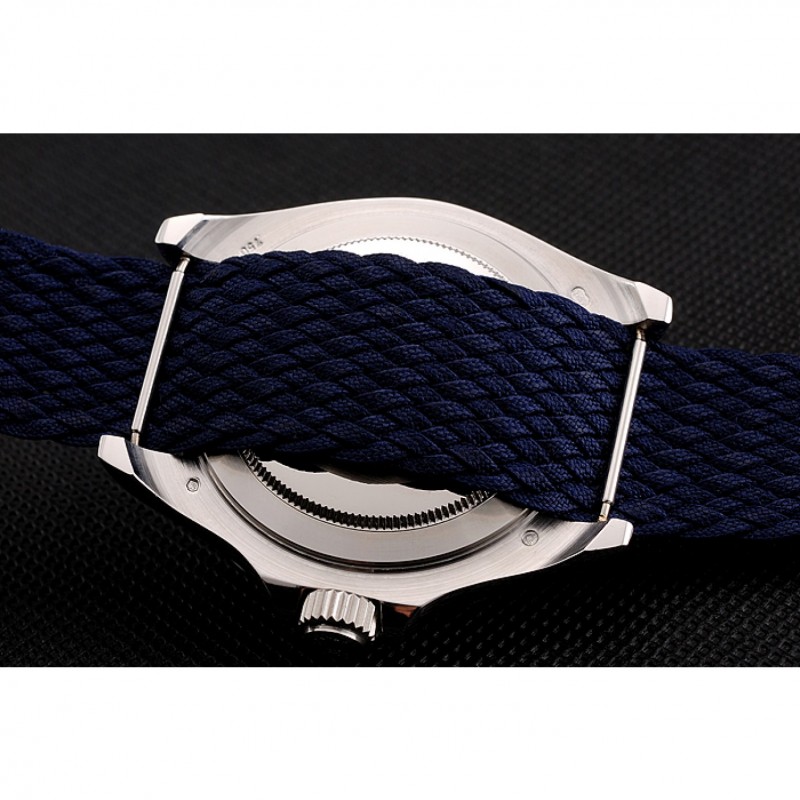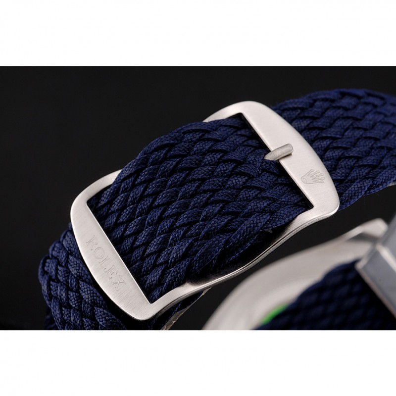 pulsera: de acero inoxidable pulido correa de tela azul con Rolex y el logotipo inscrito gancho hebilla de cierre