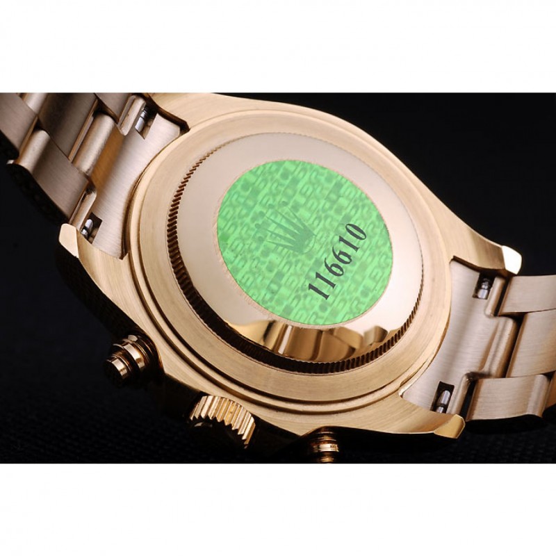 Volver: El oro amarillo push-in de vuelta con el logotipo verde sello Rolex