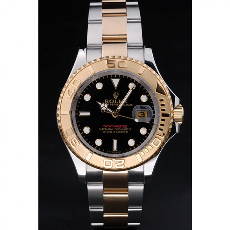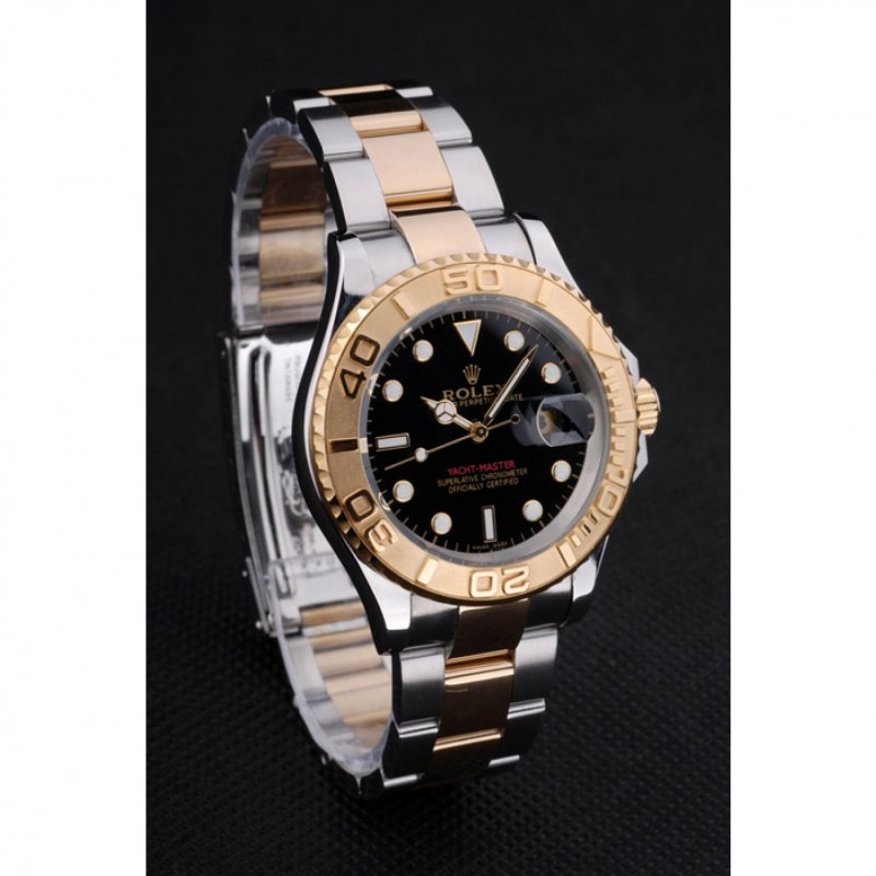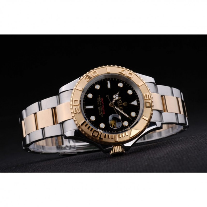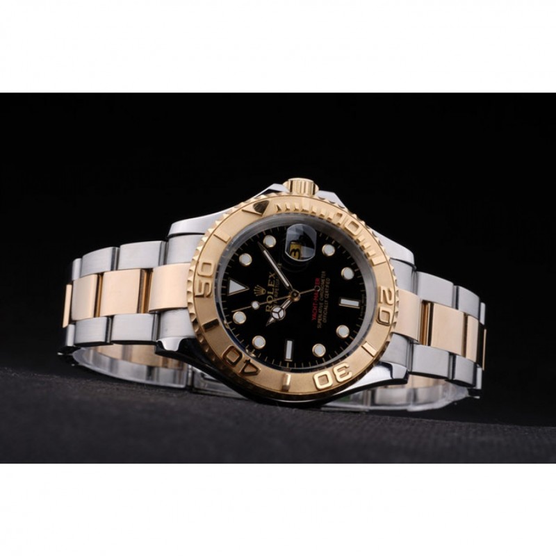 pulsera: Dos tonificado cepillado y de eslabones de acero inoxidable de tono oro pulsera con el grabado Rolex plegable en el corchete con el logotipo de Rolex