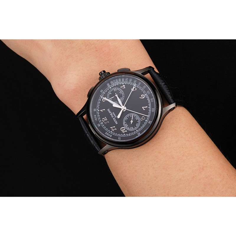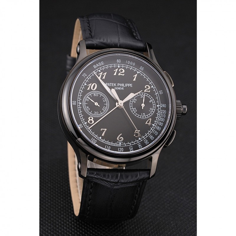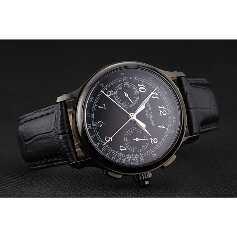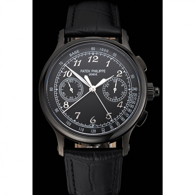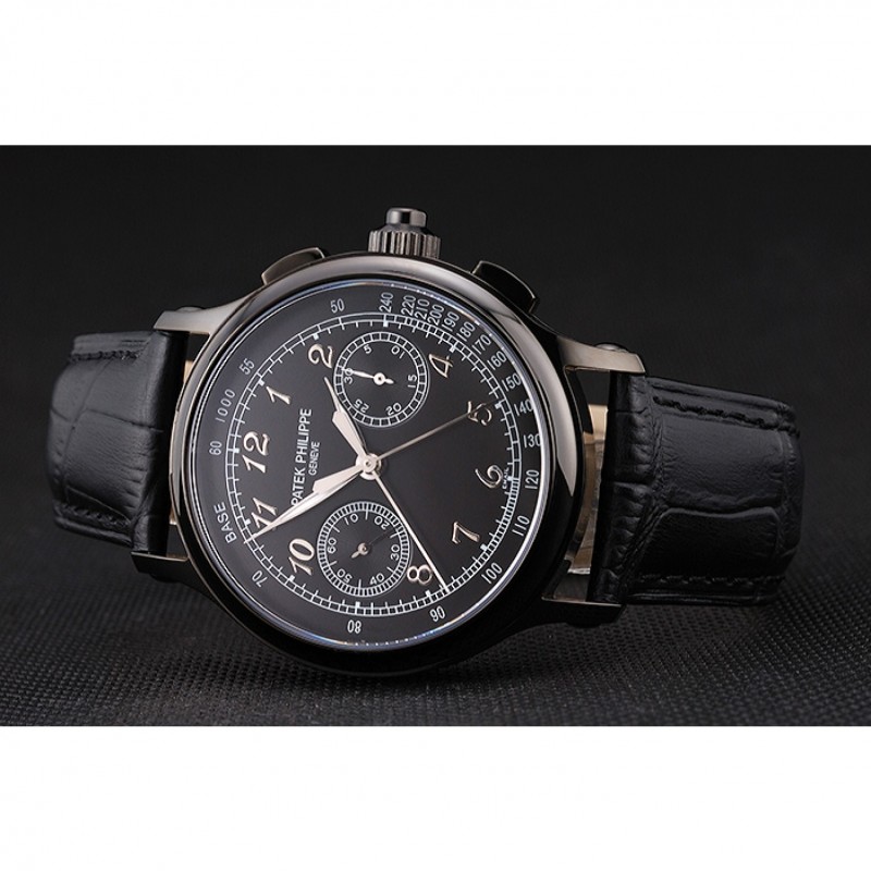 Segundos suizo Patek Philippe Dividir Cronógrafo Negro Dial correa de cuero de la caja Negro Negro