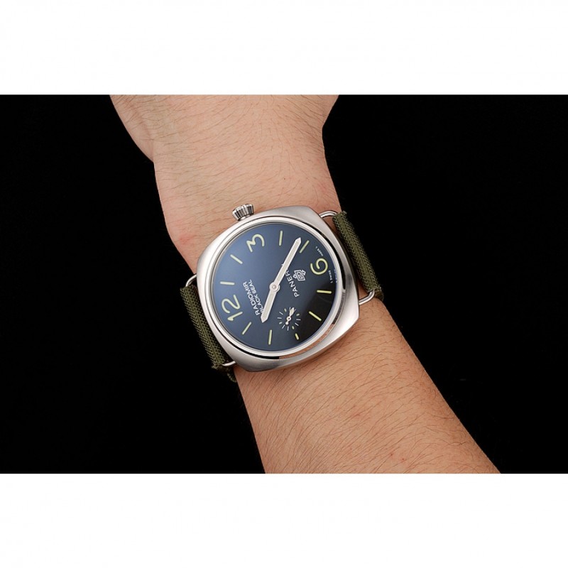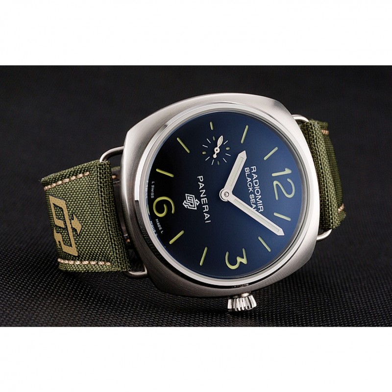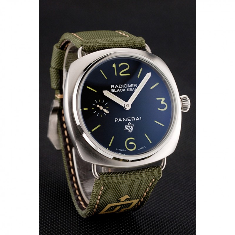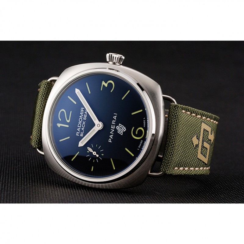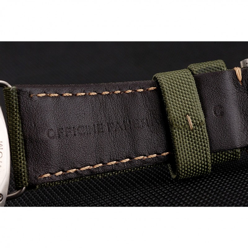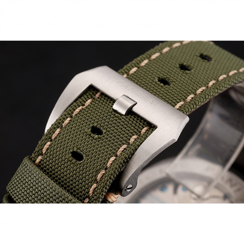 pulsera: calor Officine Panerai tela verde en relieve correa con costuras de hilo beige y Panerai grabado de acero inoxidable pulido de gancho hebilla de cierre