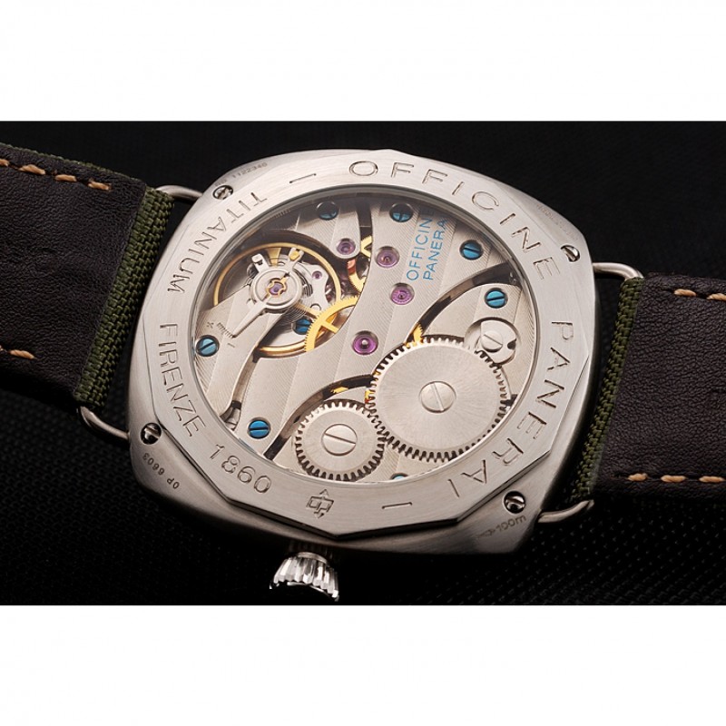 Volver: de acero inoxidable cepillado complemento de vuelta con Panerai Officine grabado transparente mecánica revelador ventana