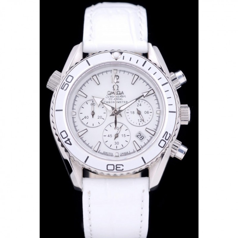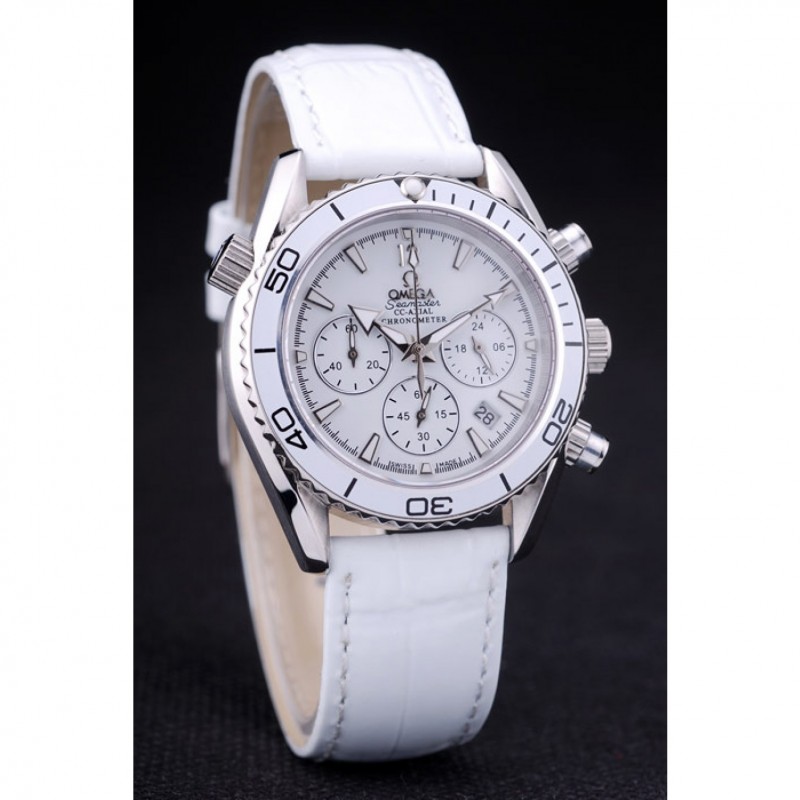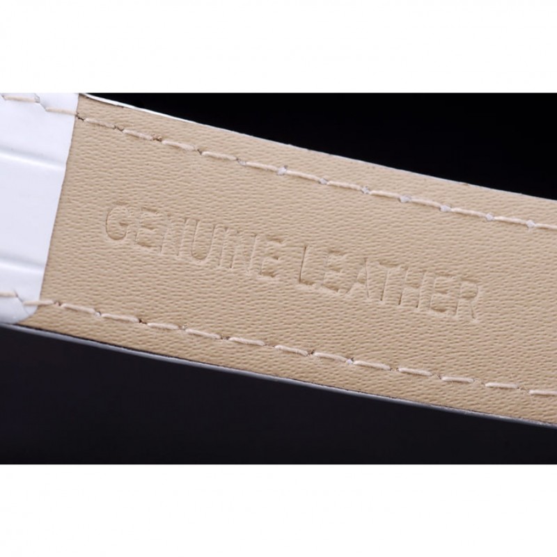 pulsera: correa de piel de cocodrilo calor Omega en relieve patente blanco con Omega inscrito de acero inoxidable pulido de gancho hebilla de cierre
