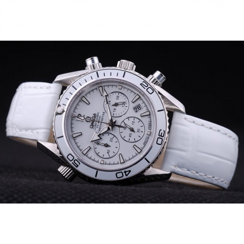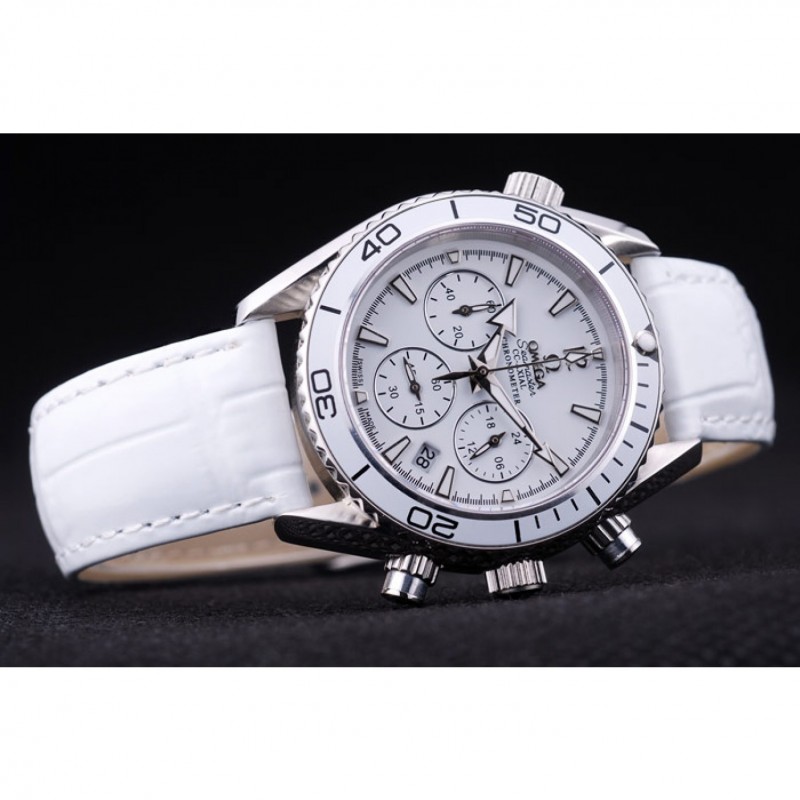 Crown: pulido corona cutwork acero inoxidable con logo Omega y una corona de botón en cada lado de ella, más una corona cutwork en el lado opuesto