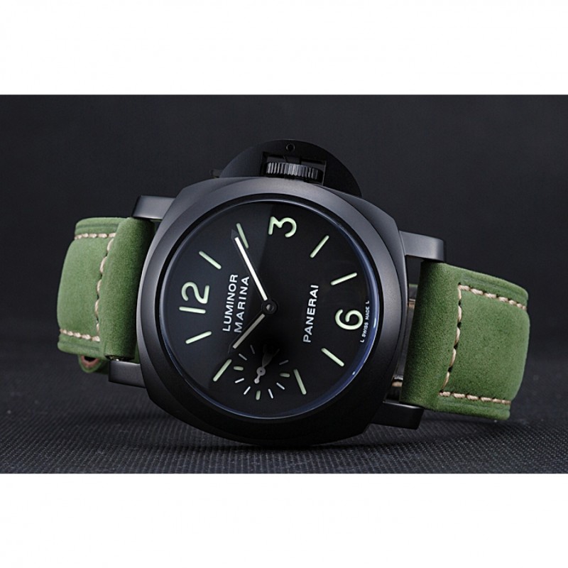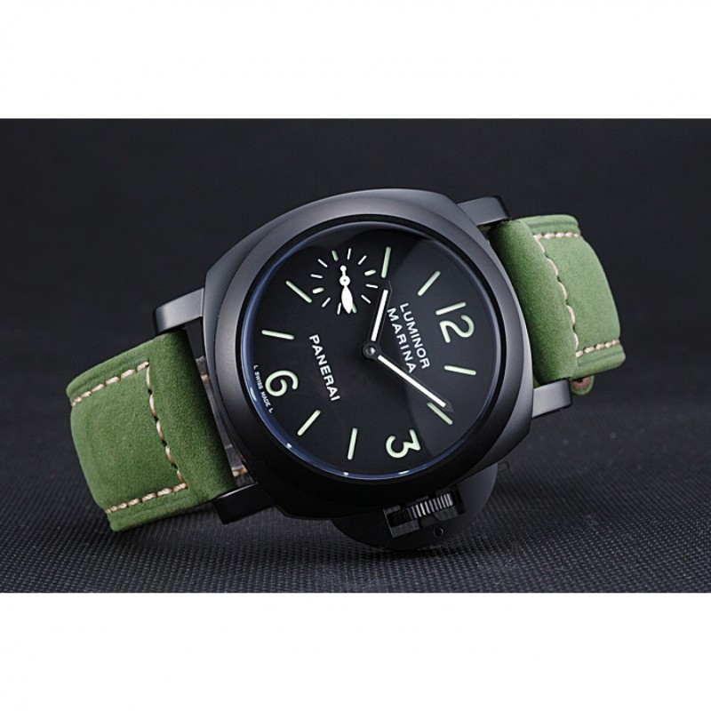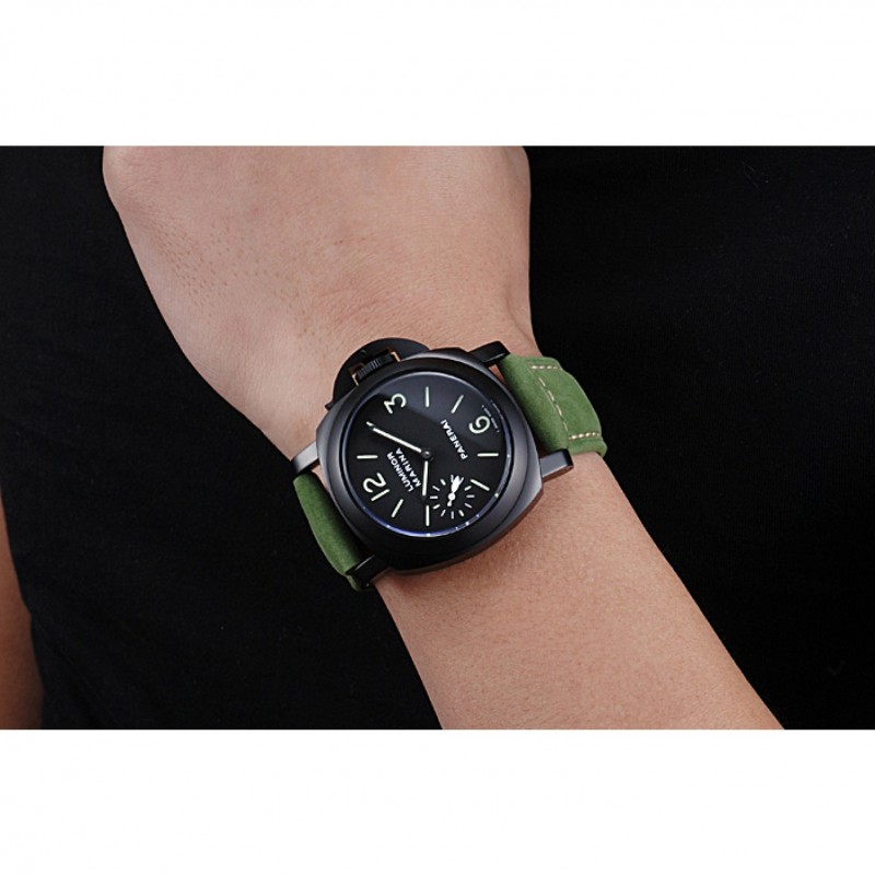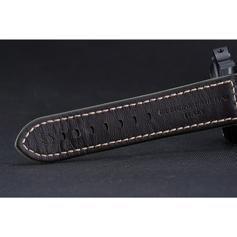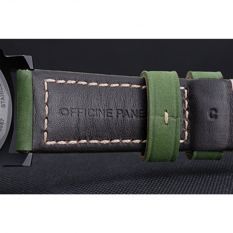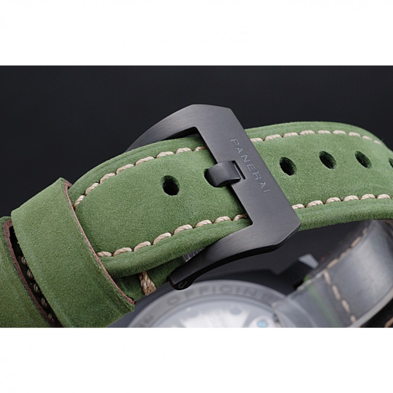 pulsera: Officine Panerai Italia calor en relieve verde correa de cuero de gamuza con costuras de hilo blanco y Panerai grabado ion-plateado broche de gancho hebilla