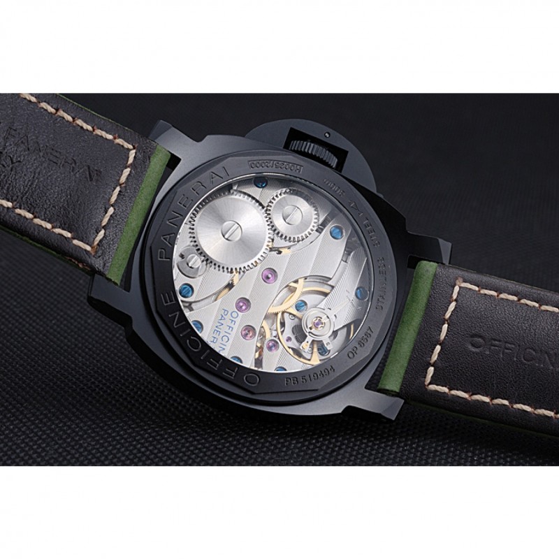 Volver: Ion-plateado complemento de nuevo con la mecánica revelando centro y grabados Officine Panerai