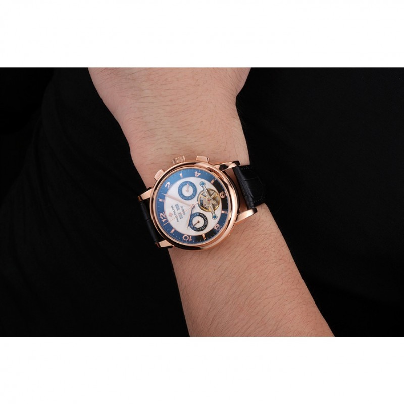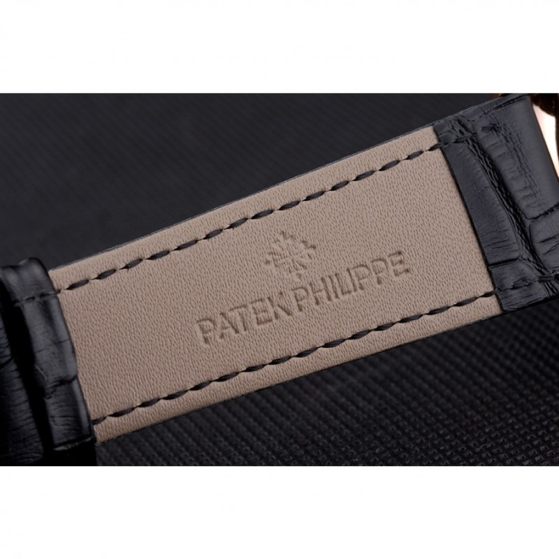 pulsera:calor Patek Philippe Geneve en relieve de cocodrilo negro con el logotipo y Patek Philippe inscrito rosa de 18 quilates chapado en oro gancho hebilla de cierre