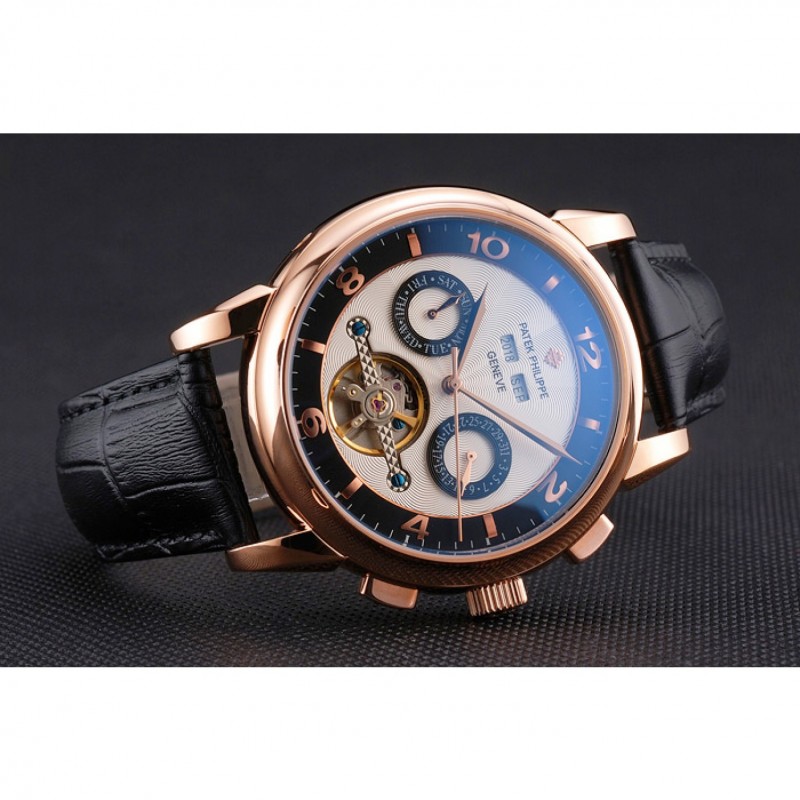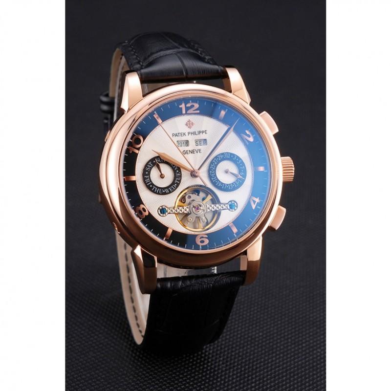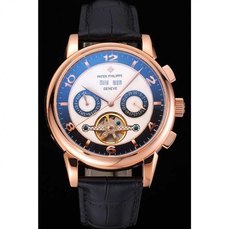 SS Patek Philippe Calendario Perpetuo Tourbillon de dos tonos Dial correa de cuero de la caja de oro rosa Negro